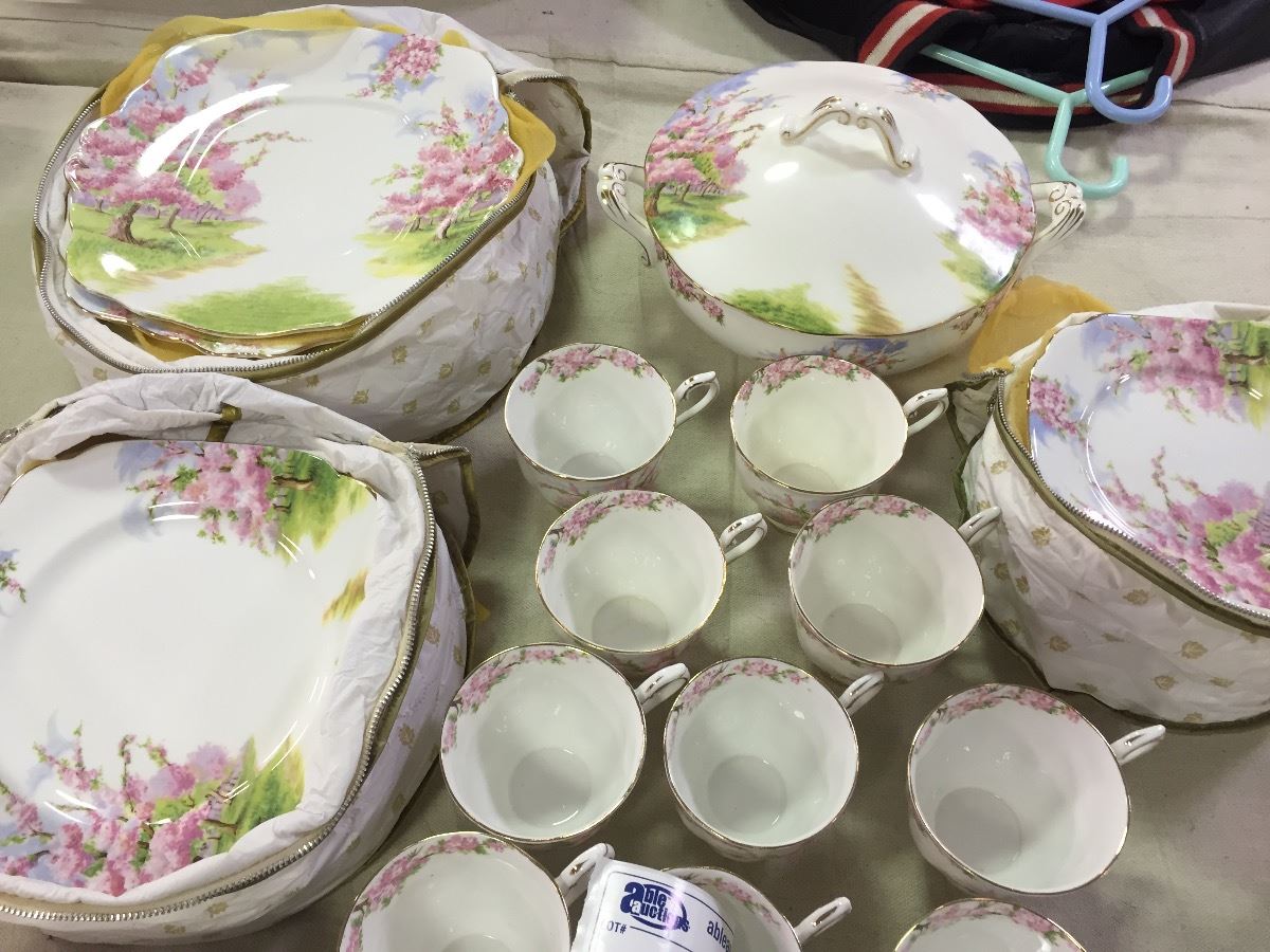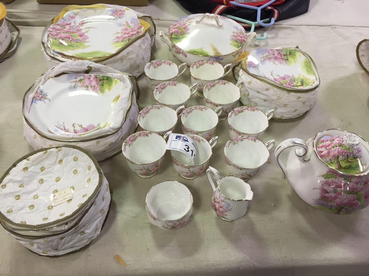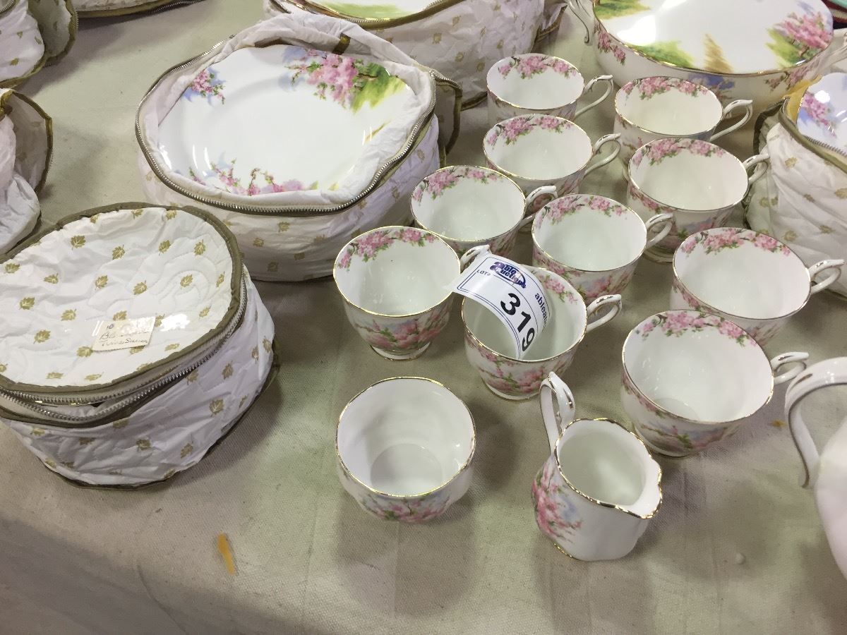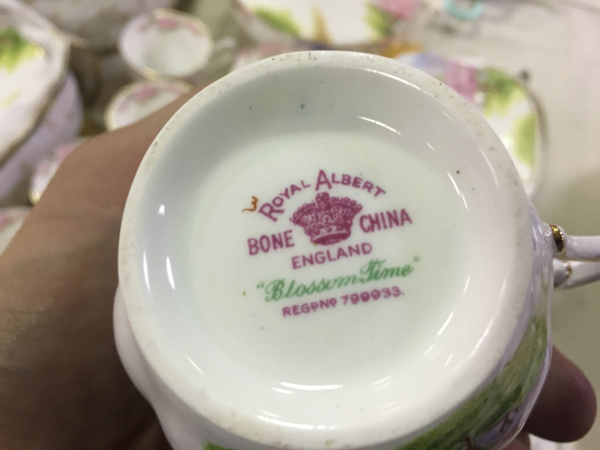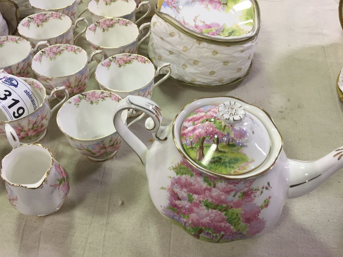 COLLECTION OF ROYAL ALBERT "BLOSSOM TIME" DINNER PLATES, CUPS, BOWLS, TEA POT, ETC
