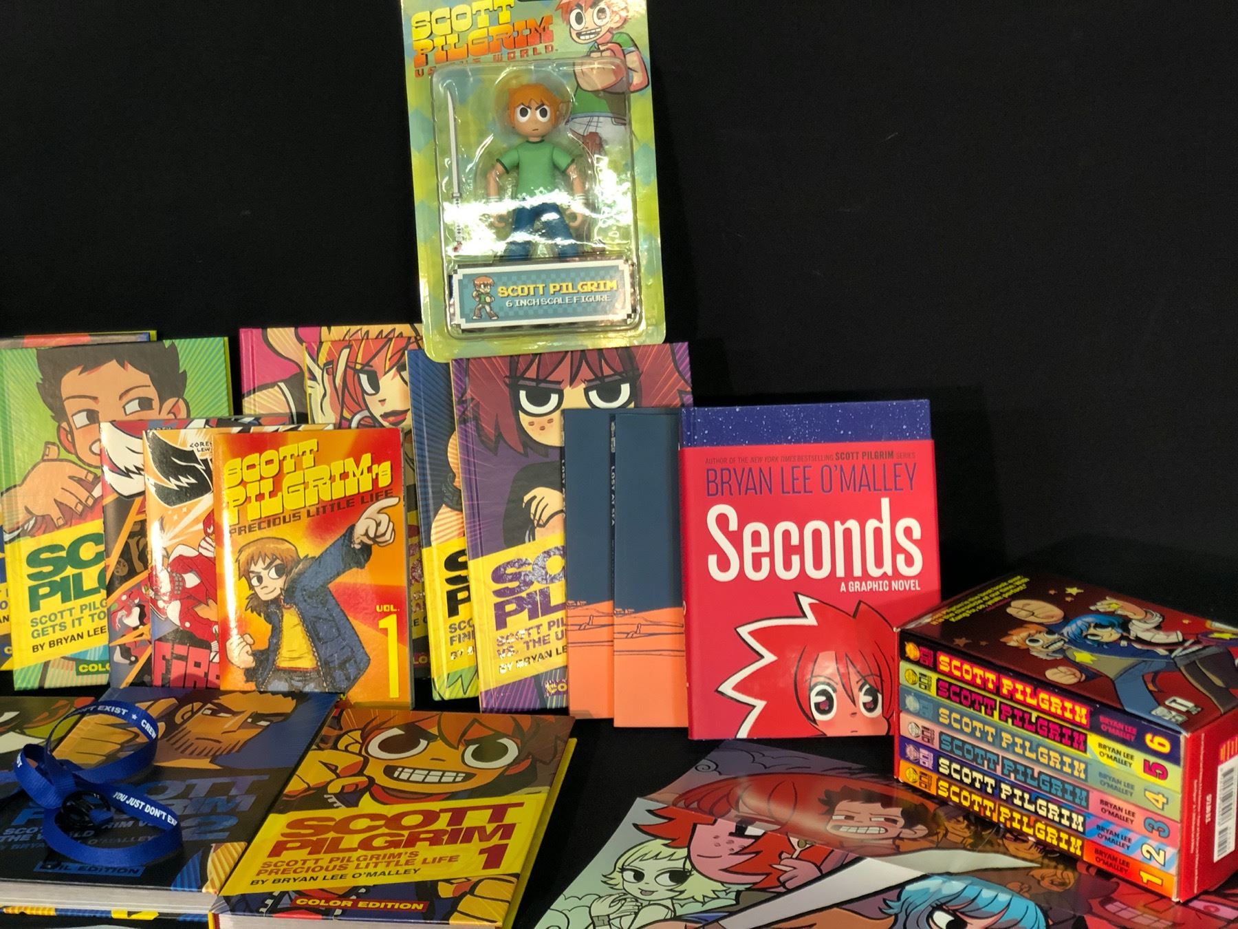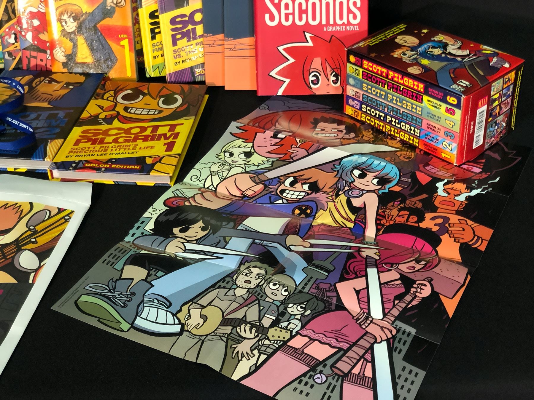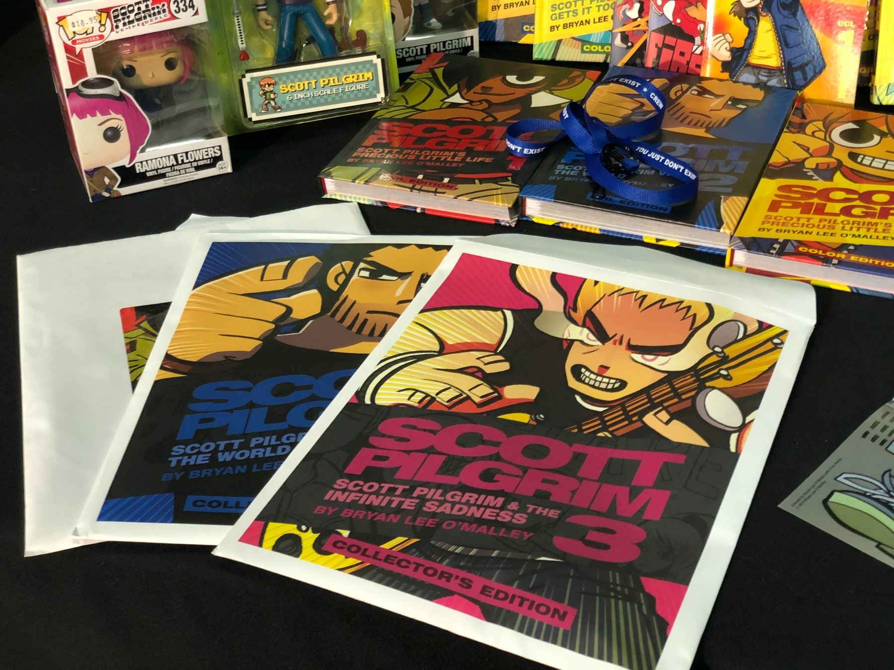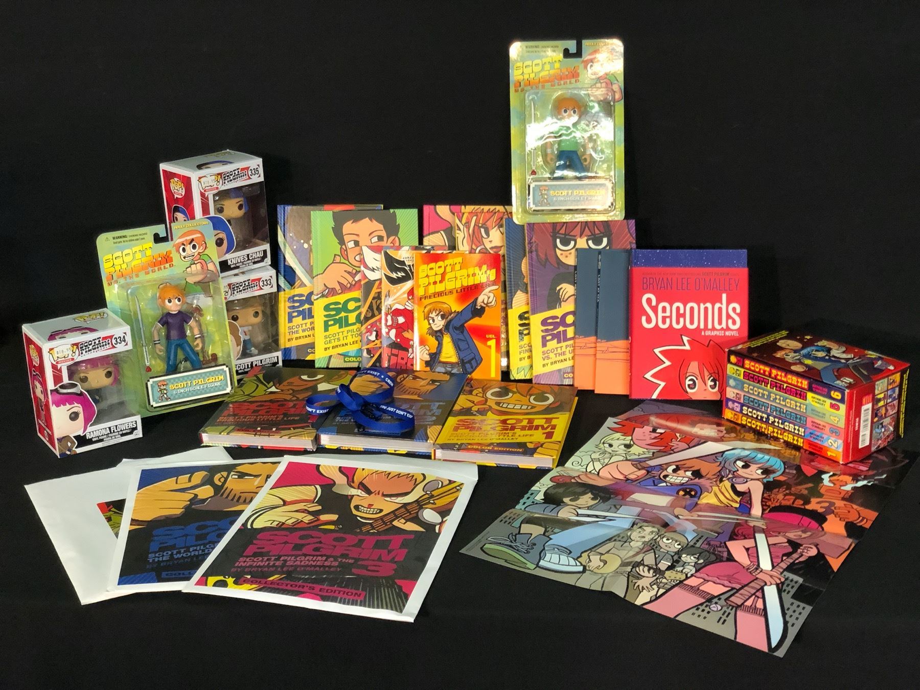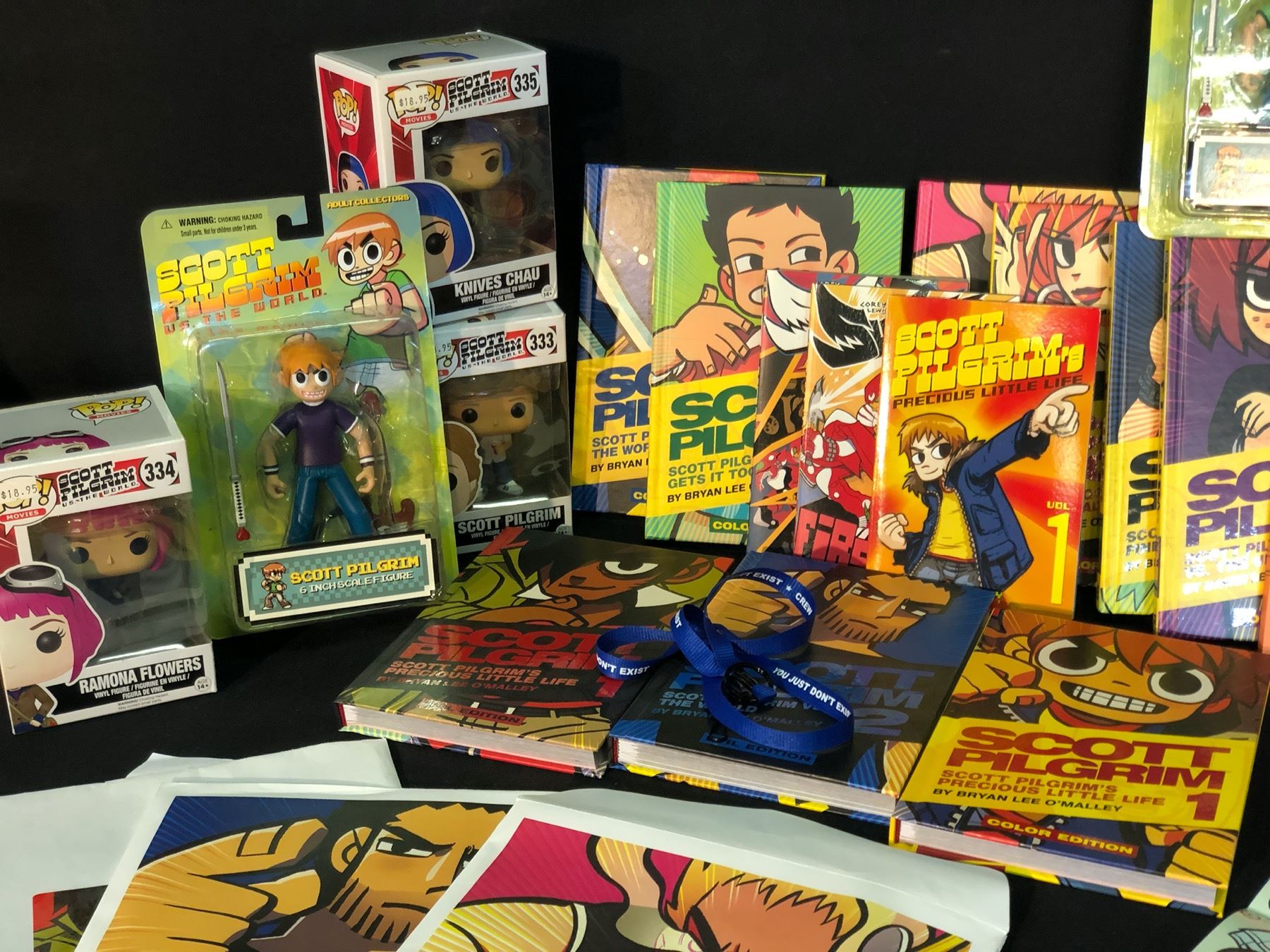 COLLECTION OF SCOTT PILGRIM AND RELATED ITEMS INC. HARDCOVER BOOKS, POP! FIGURINES, COLLECTORS EDITION POSTERS AND MORE