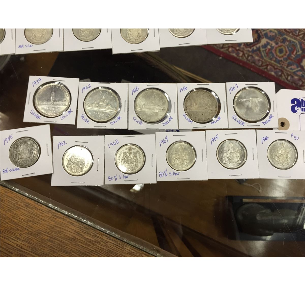 COLLECTION OF SILVER DOLLARS (1939, 1962, 1965-67) PLUS 6- 50 CENT SILVER PIECES