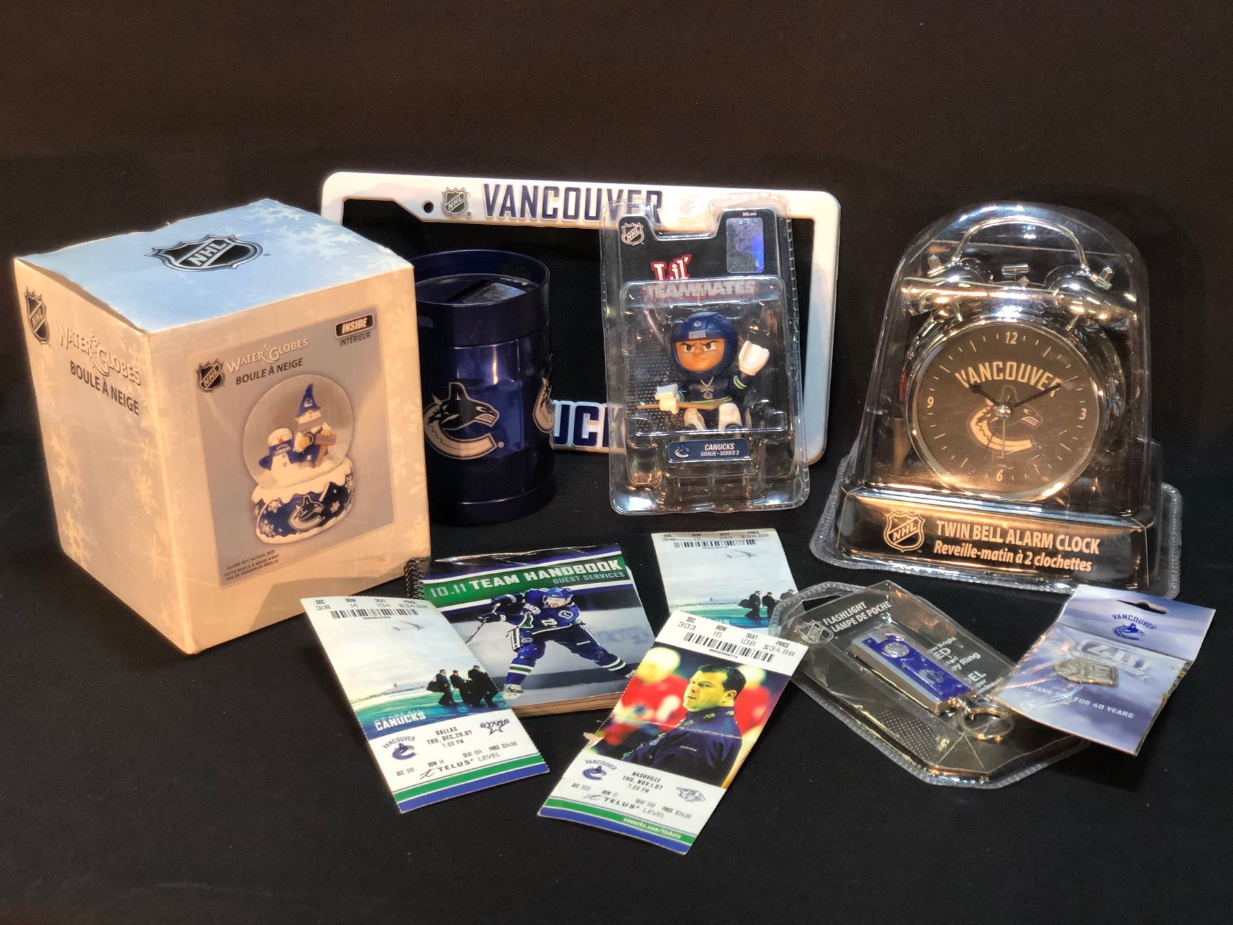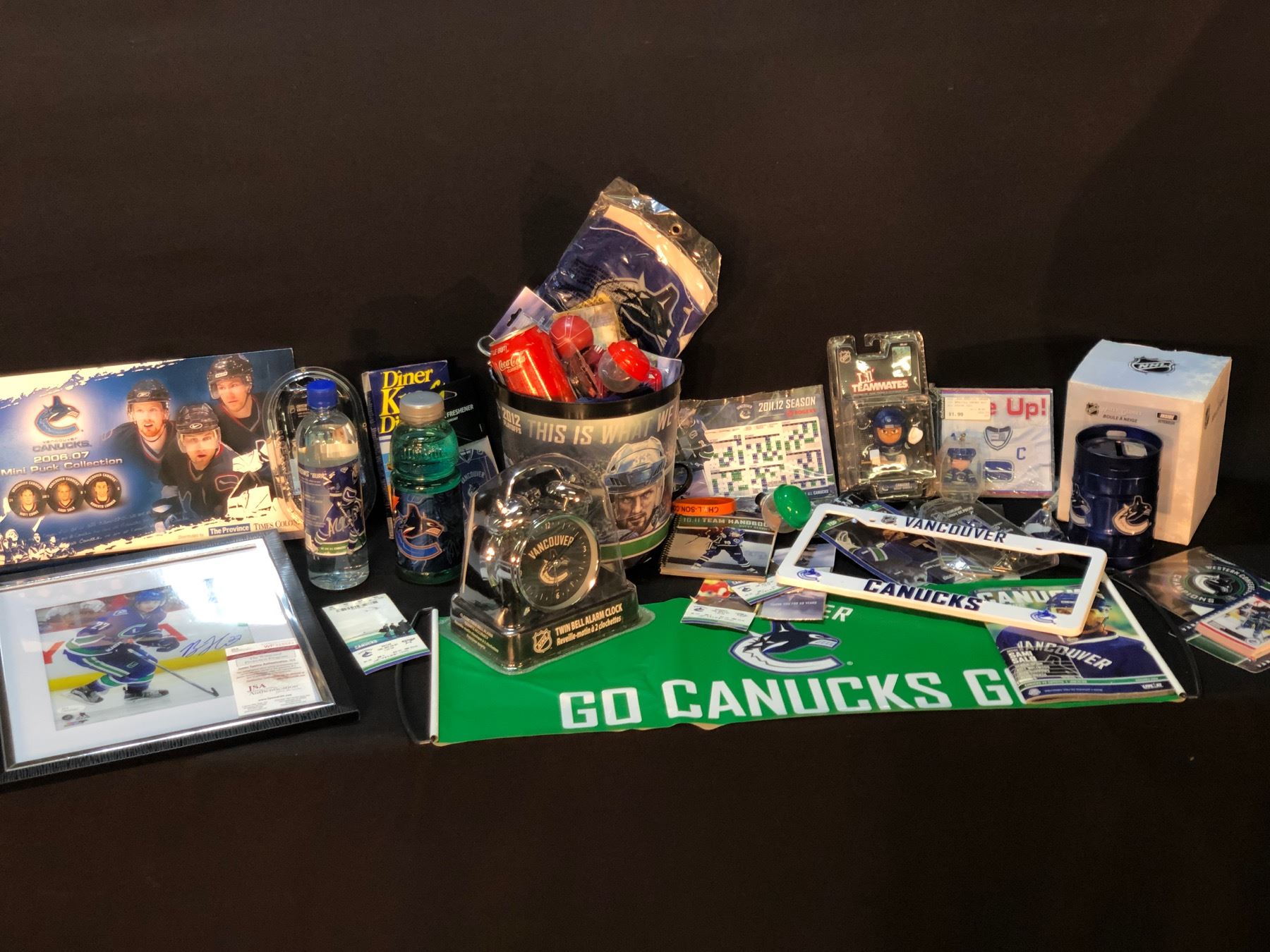 COLLECTION OF VANCOUVER CANUCKS MEMORABILIA INC. FRAMED PICTURE, TICKETS, SOME AUTOGRAPHED PIECES AND MORE