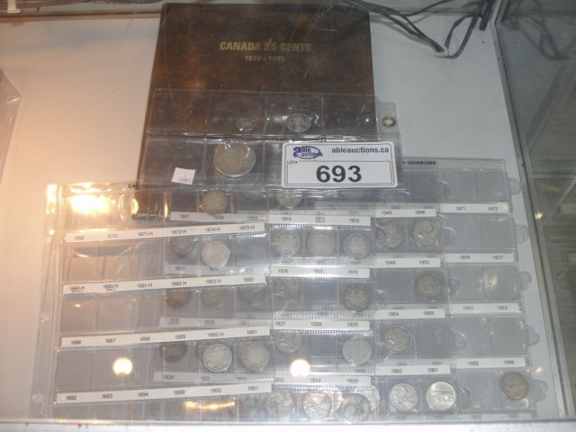 COLLECTION OF VINTAGE SILVER COINS; CONSISTS OF 41 QUARTERS, 1 US 1921 SILVER DOLLAR, 1 US QUARTER AND 1 US SILVER DIME