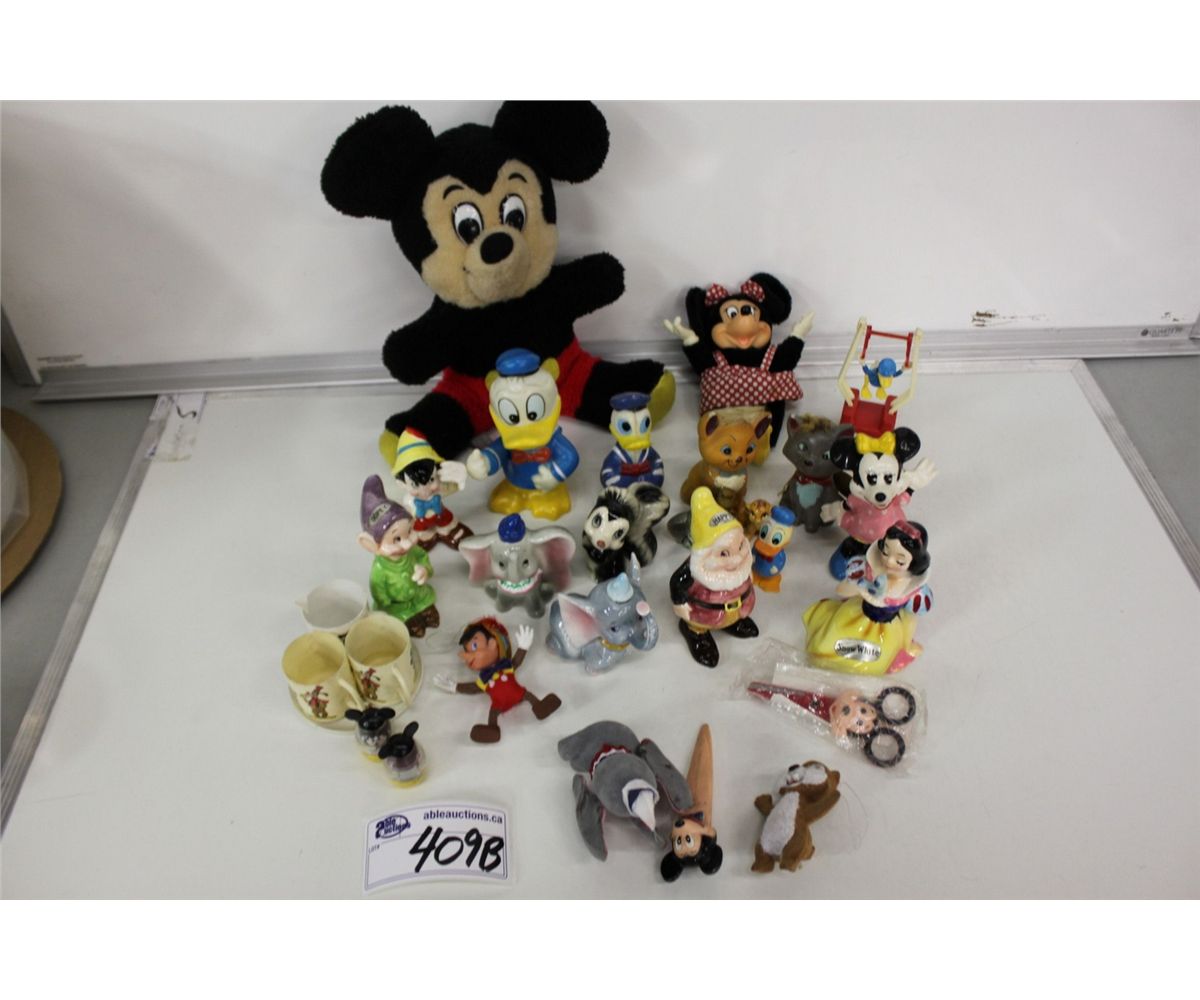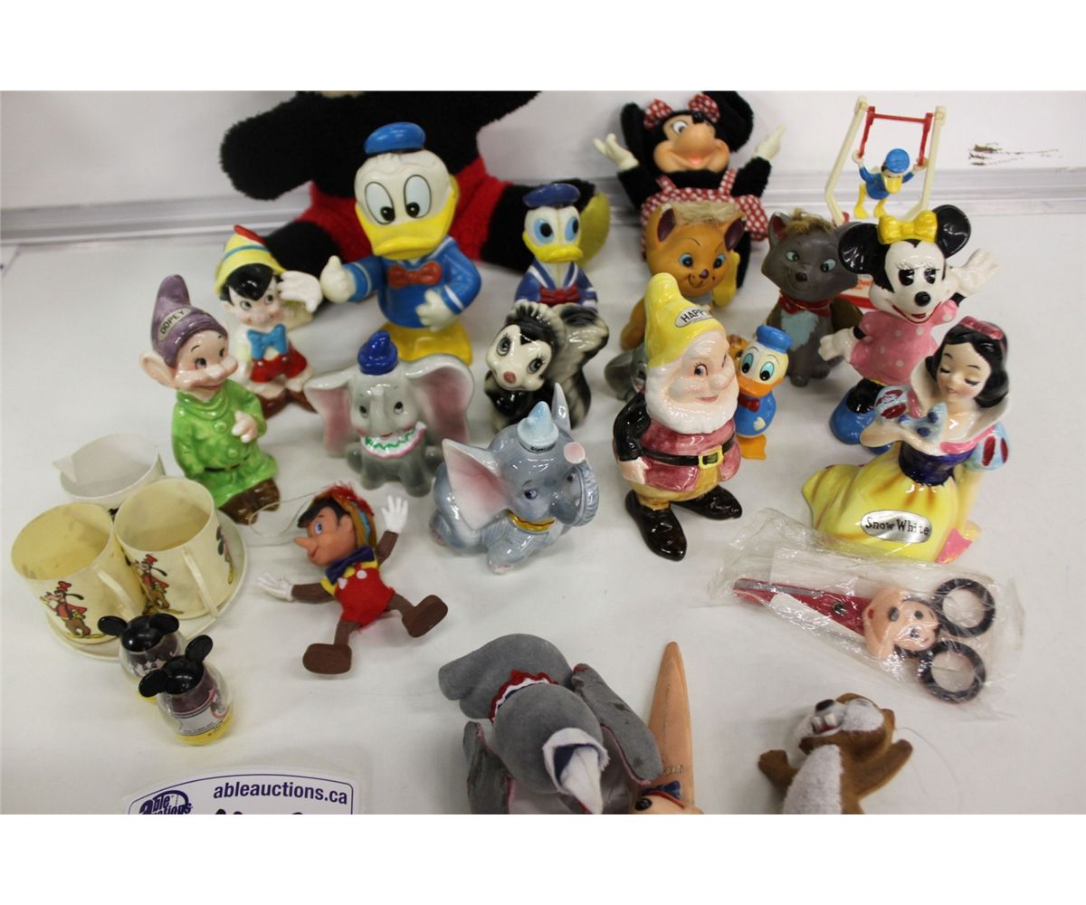 COLLECTION OF WALT DISNEY FIGURES INCLUDING SNOW WHITE -  DAFFY DUCK -  PINNOCHIO -  MICKEY AND MINNIE