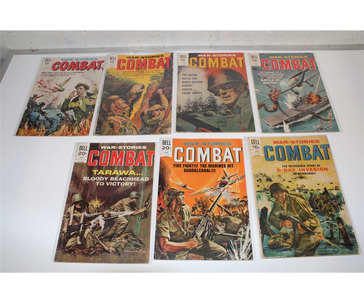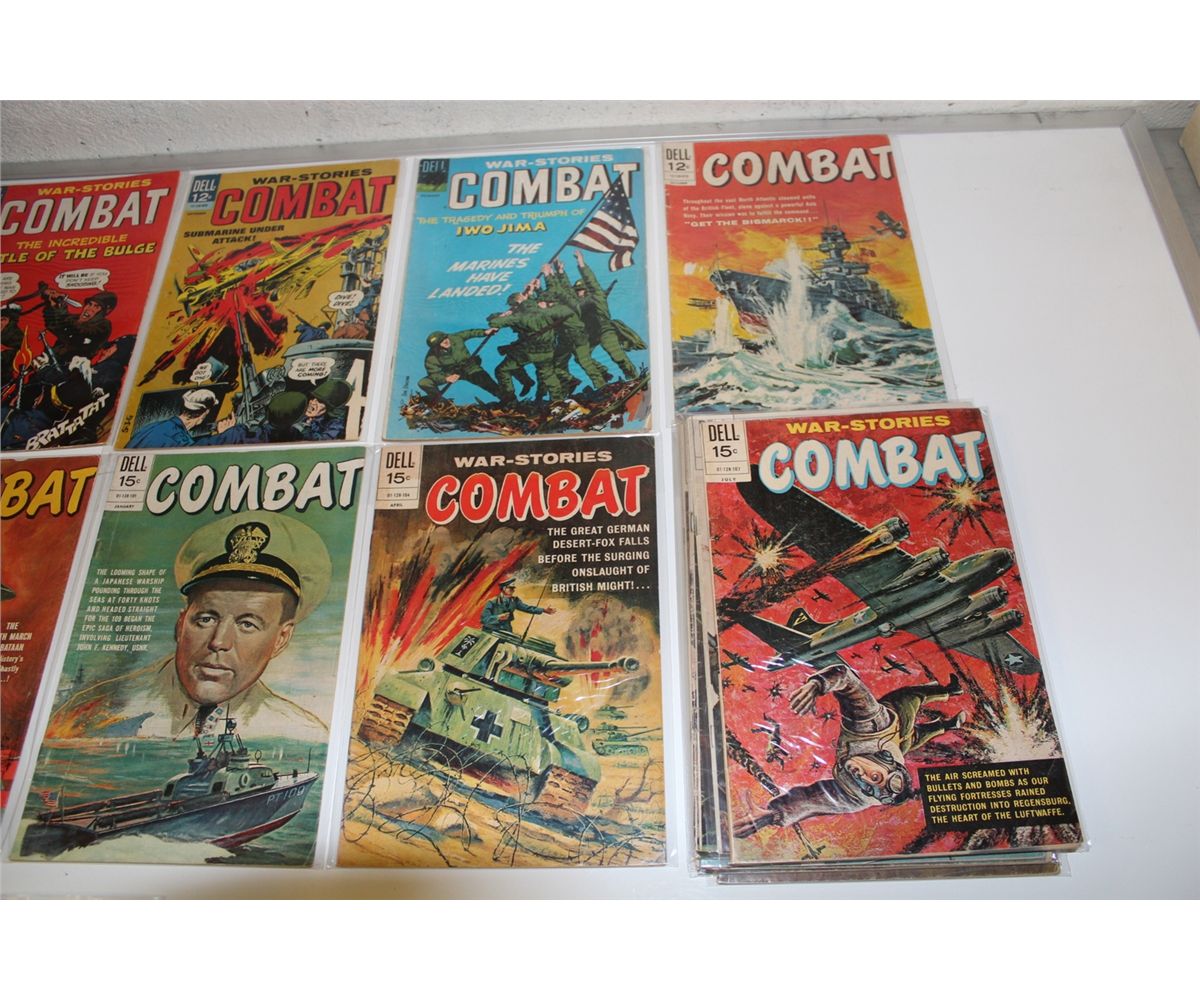COMBAT (DELL) LARGE RUN OF 17 DIFFERENT SILVER & BRONZE ISSUES BETWEEN #18 -40. MIXED GRADES, VERY NICE, SOLID RUN.