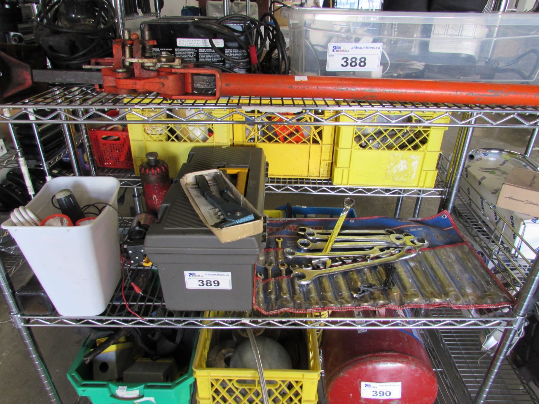 COMBINATION WRENCHES, TOOL BOX & CONTENTS, FLASH LIGHTS, ETC