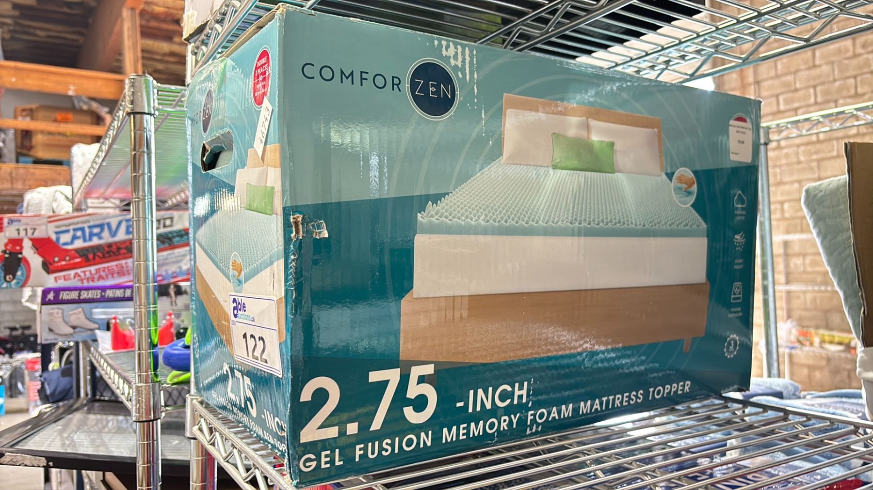 COMFOR ZEN 2.75" GEL FUSION MEMORY FOAM MATTRESS TOPPER, HAMILTON BEACH EXTRA TALL CAN OPENER & A STACK OF ASSORTED PICTURE FRAMES