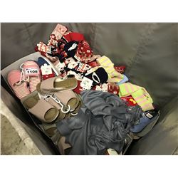 LARGE QUANTITY OF SLIPPERS, SOCKS, MITTENS AND MORE, BIN NOT INCLUDED