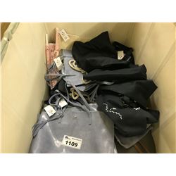 LARGE QUANTITY OF ASSORTED BAGS, PURSES AND MORE, BIN NOT INCLUDED