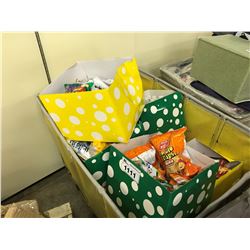 LARGE QUANTITY OF ASSORTED SNACKS AND CANDY, BIN NOT INCLUDED