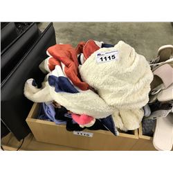 LARGE QUANTITY OF CUSHIONS, BLANKETS AND MORE, BIN NOT INCLUDED