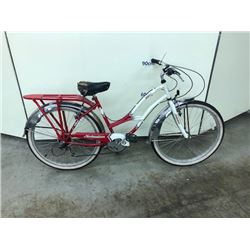 WHITE AND RED SCHWINN 5 SPEED CRUISER BIKE