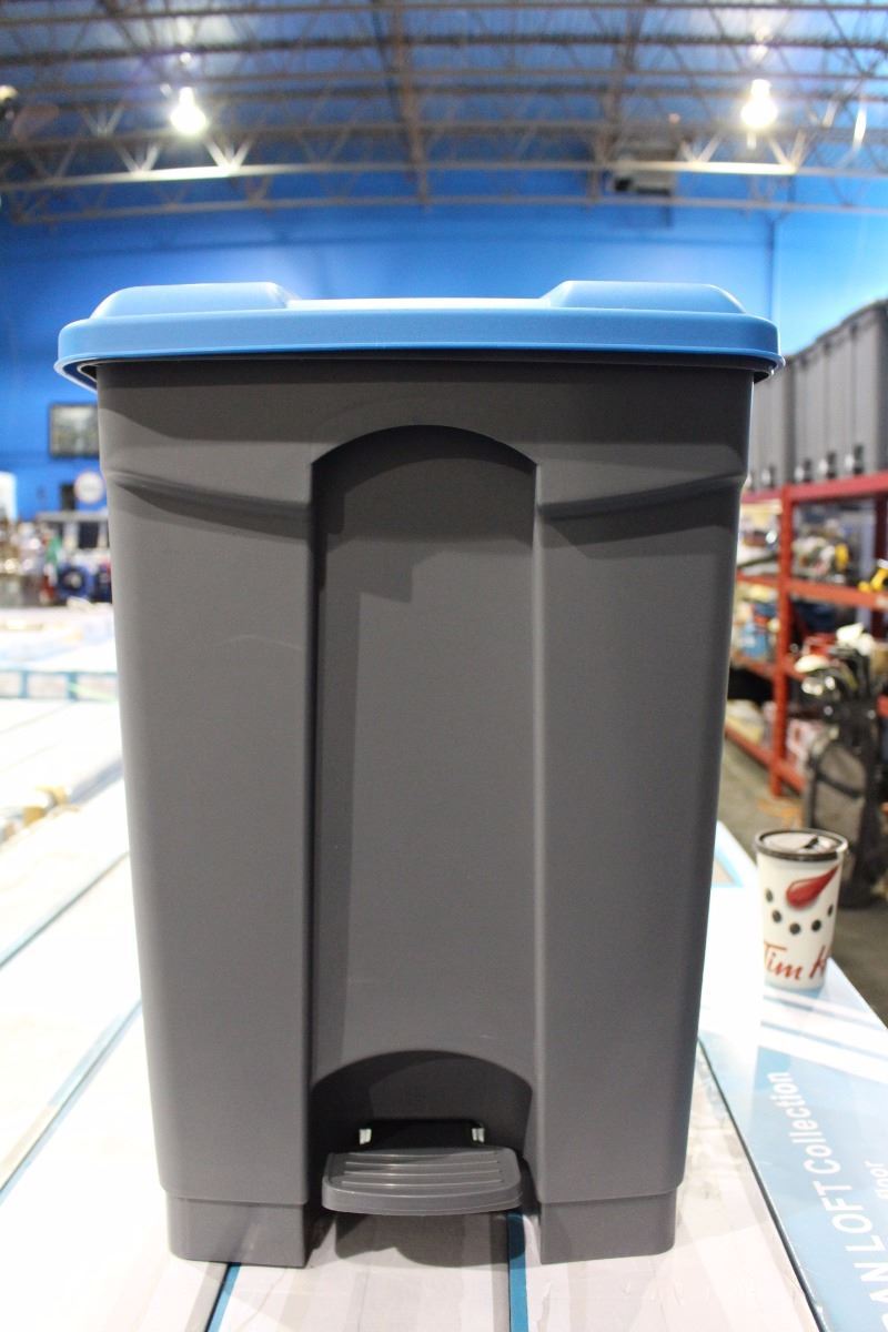 COMMERCIAL BLUE AND GREY GARBAGE CAN