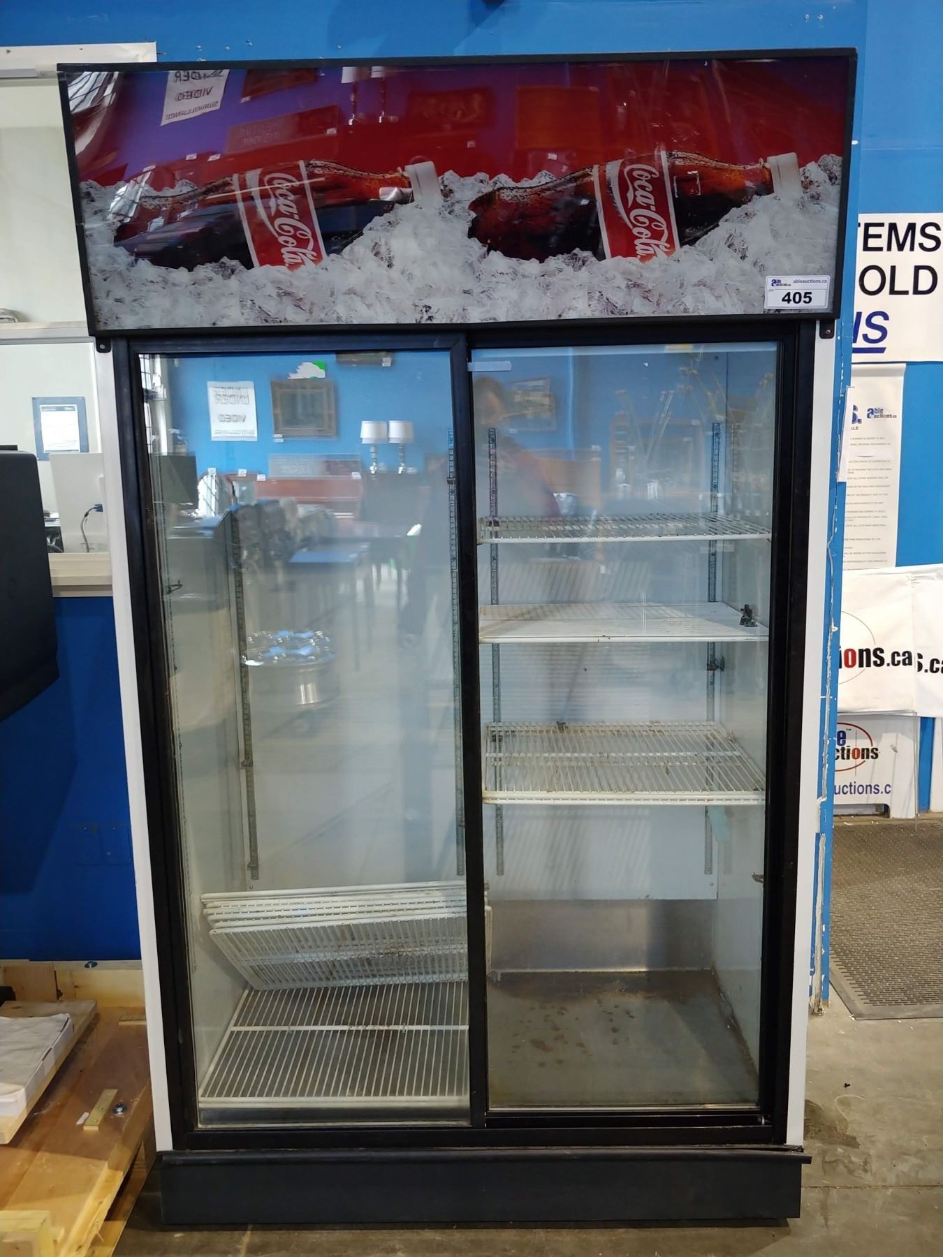 COMMERCIAL DISPLAY COOLER WITH COCA-COLA BANNER *NOT WORKING*