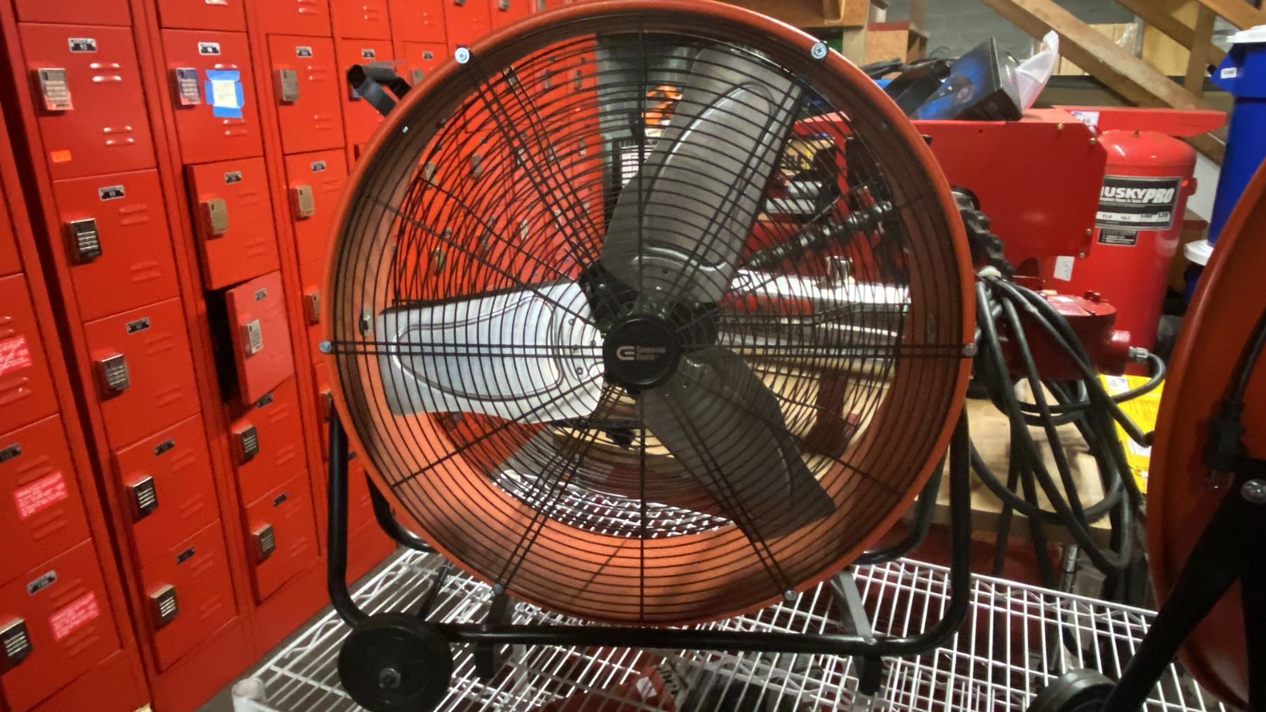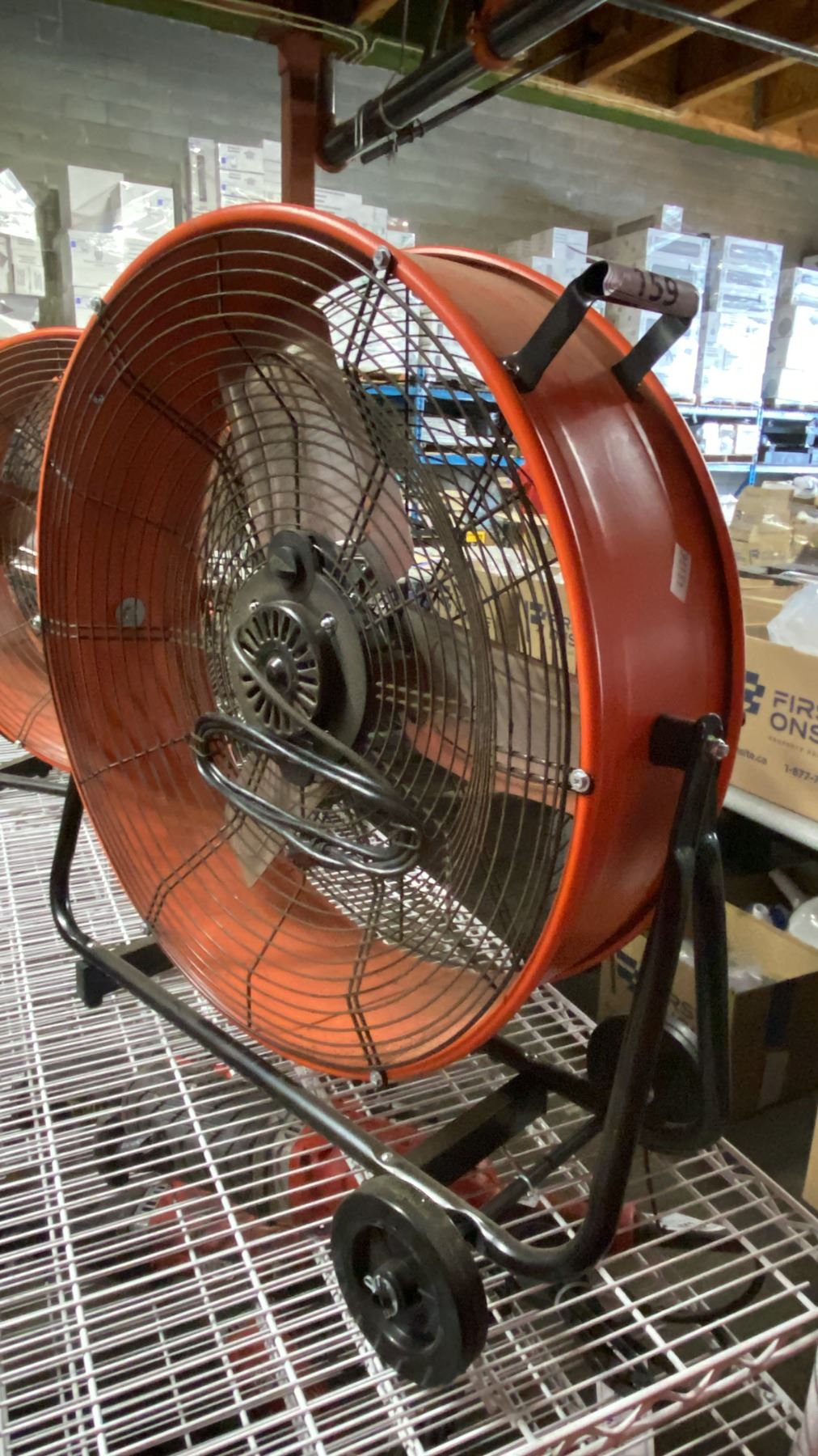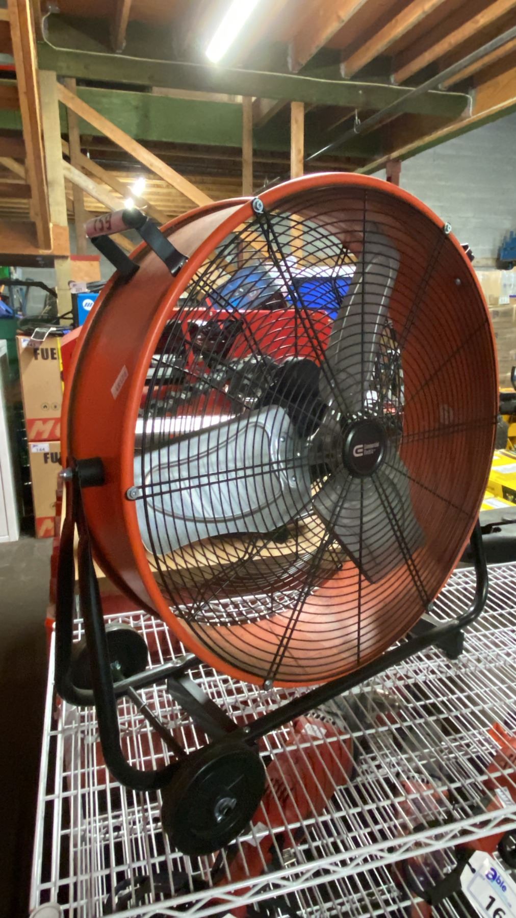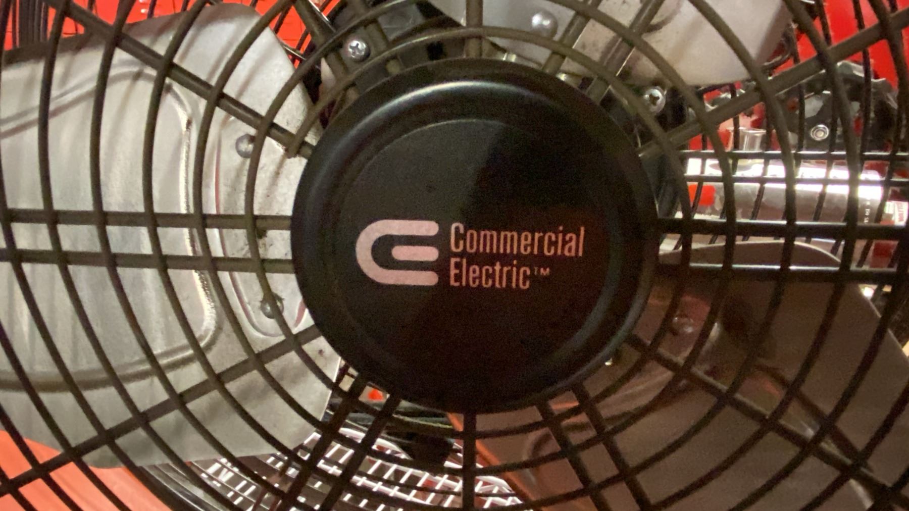 COMMERCIAL ELECTRIC ORANGE METAL MOBILE FLOOR FAN