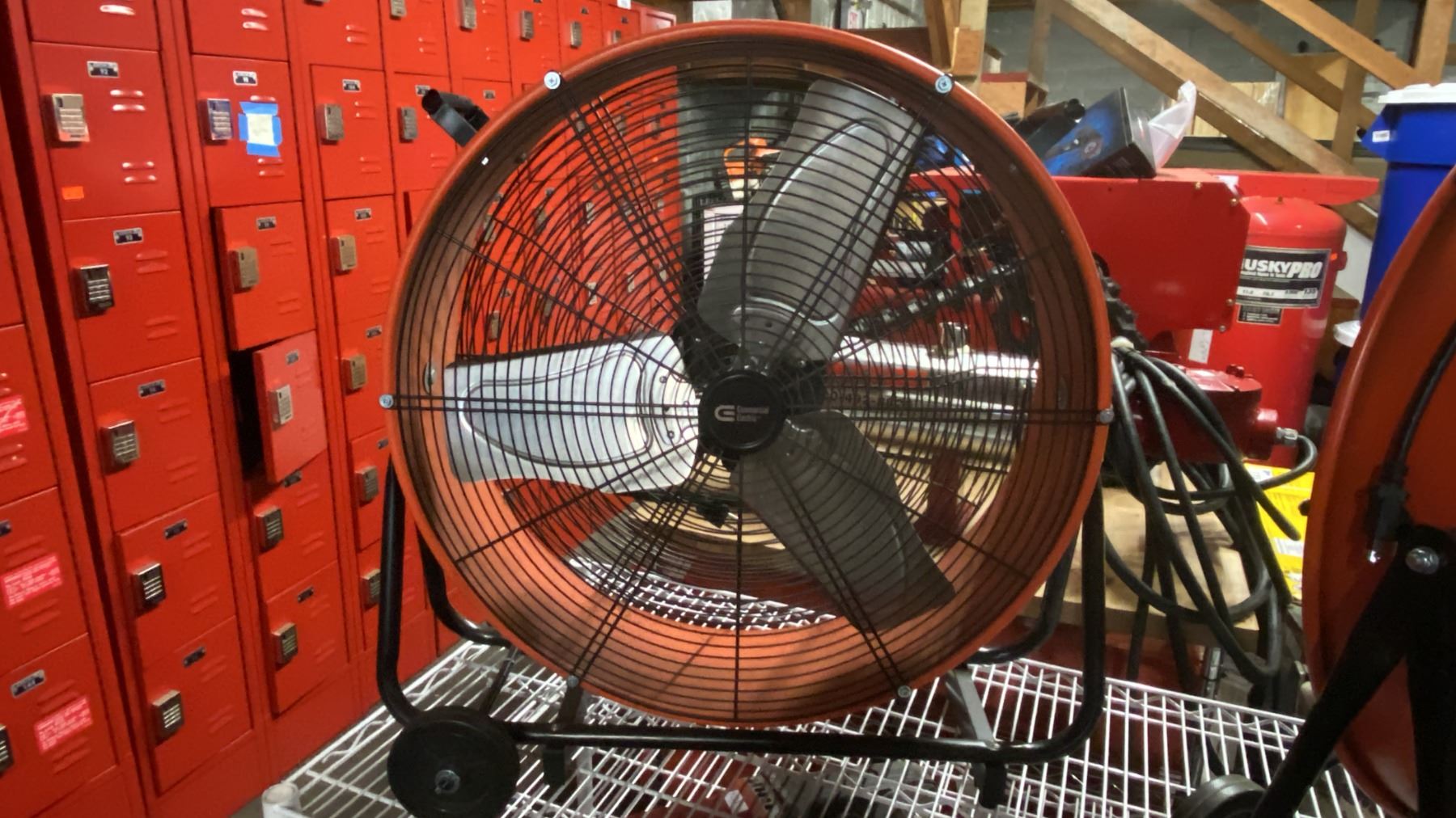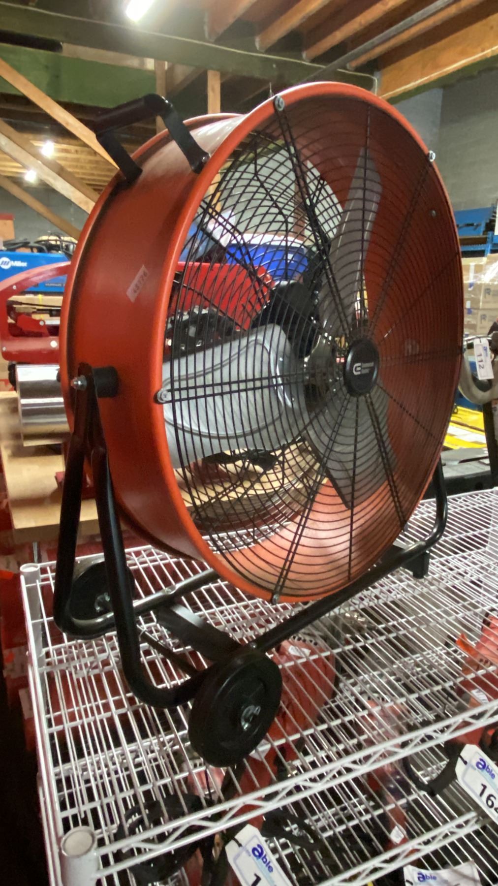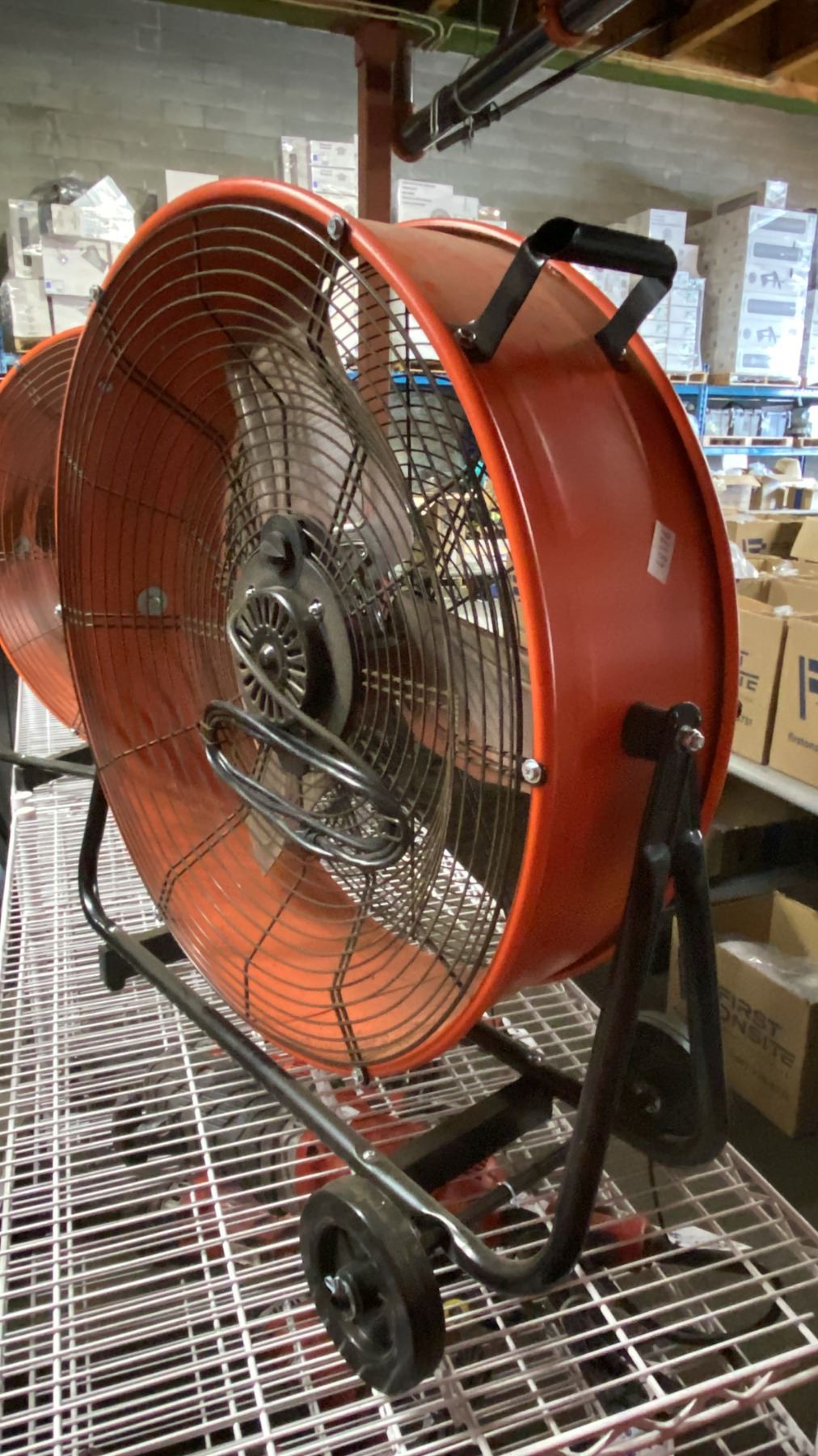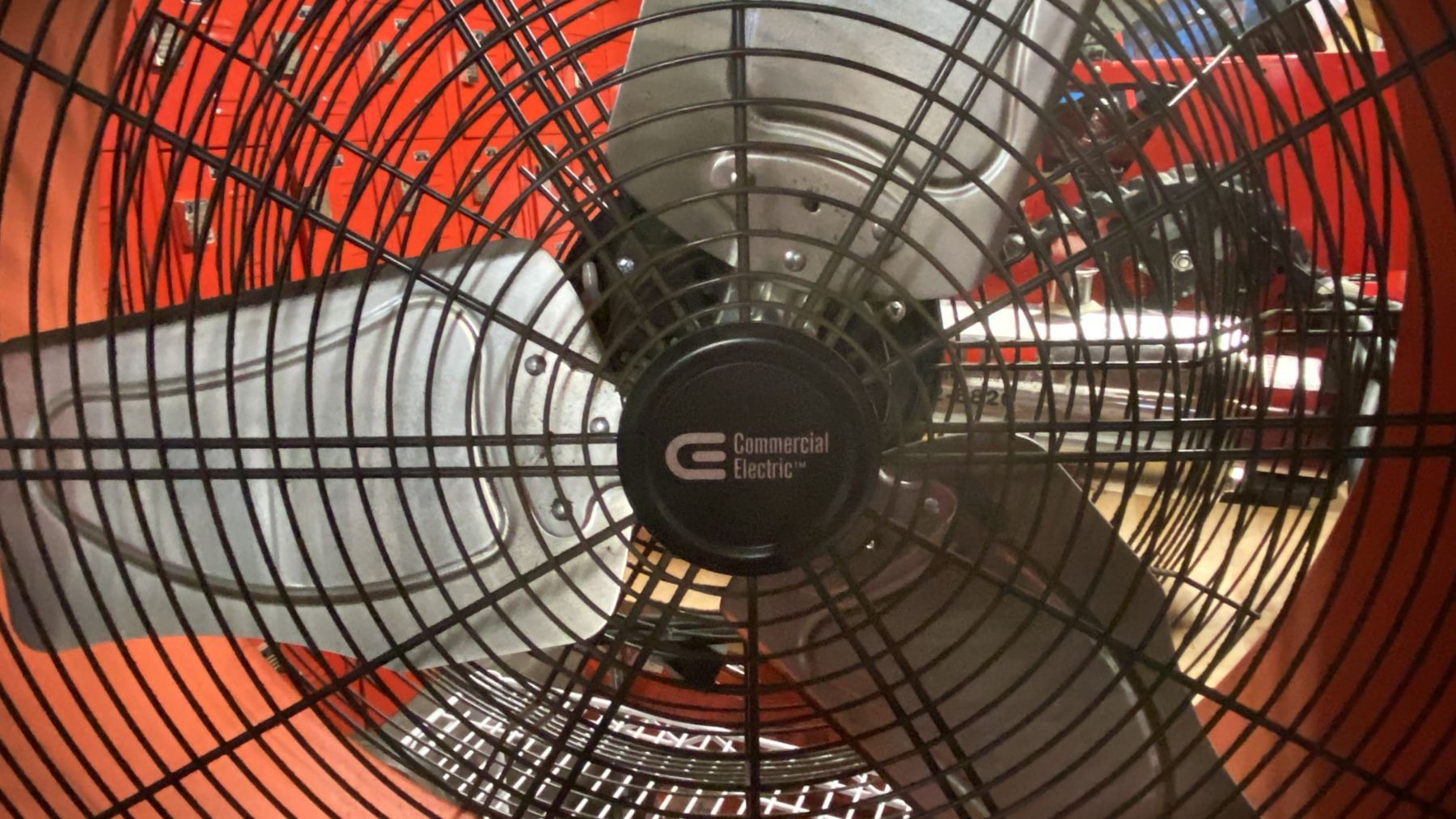 COMMERCIAL ELECTRIC ORANGE METAL MOBILE FLOOR FAN