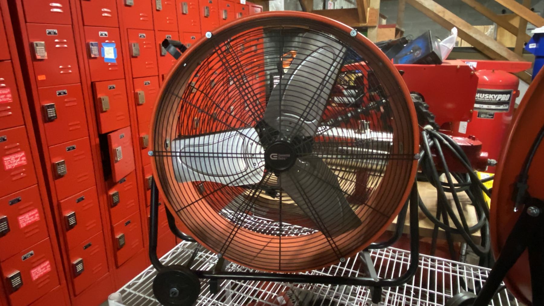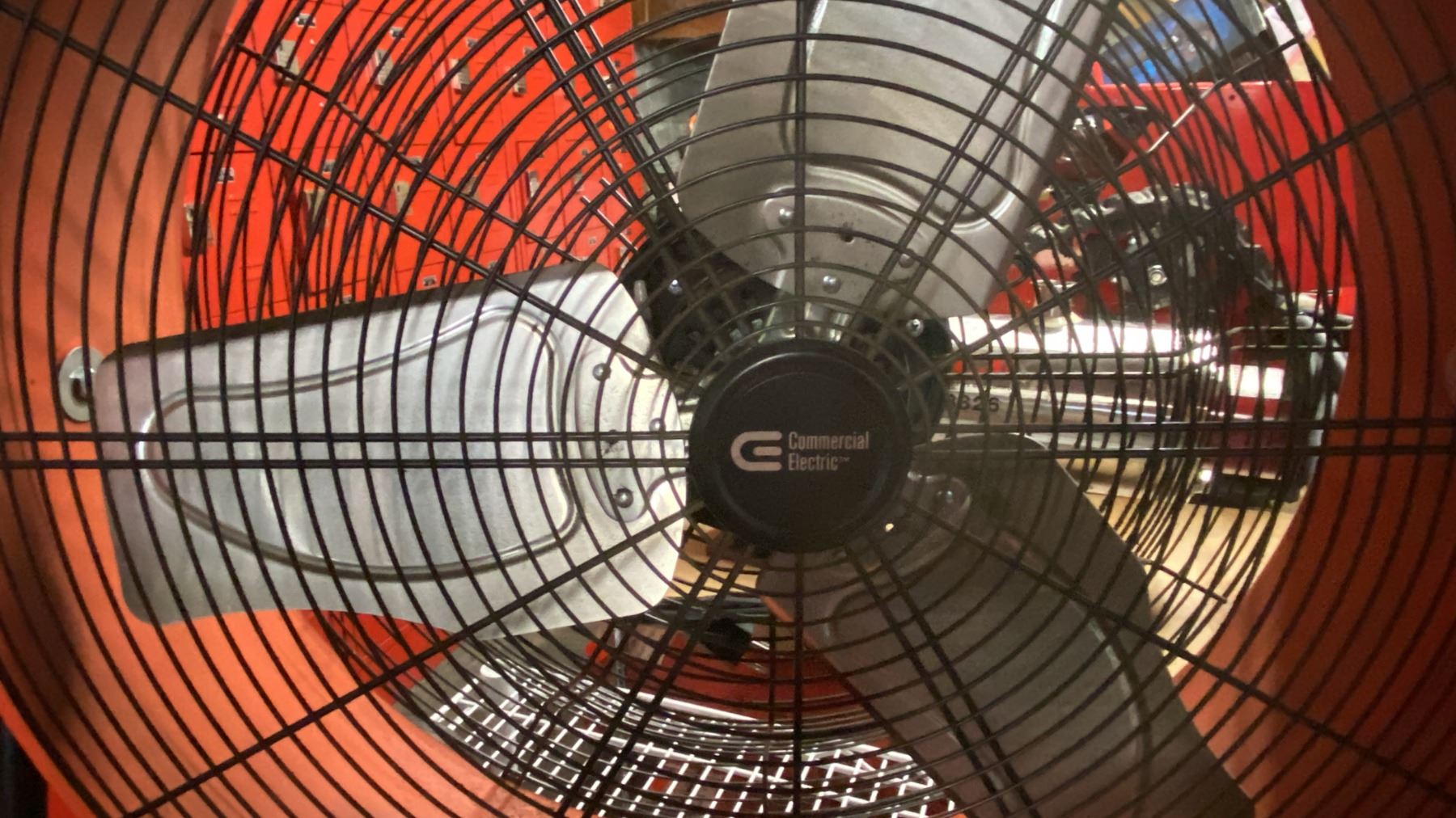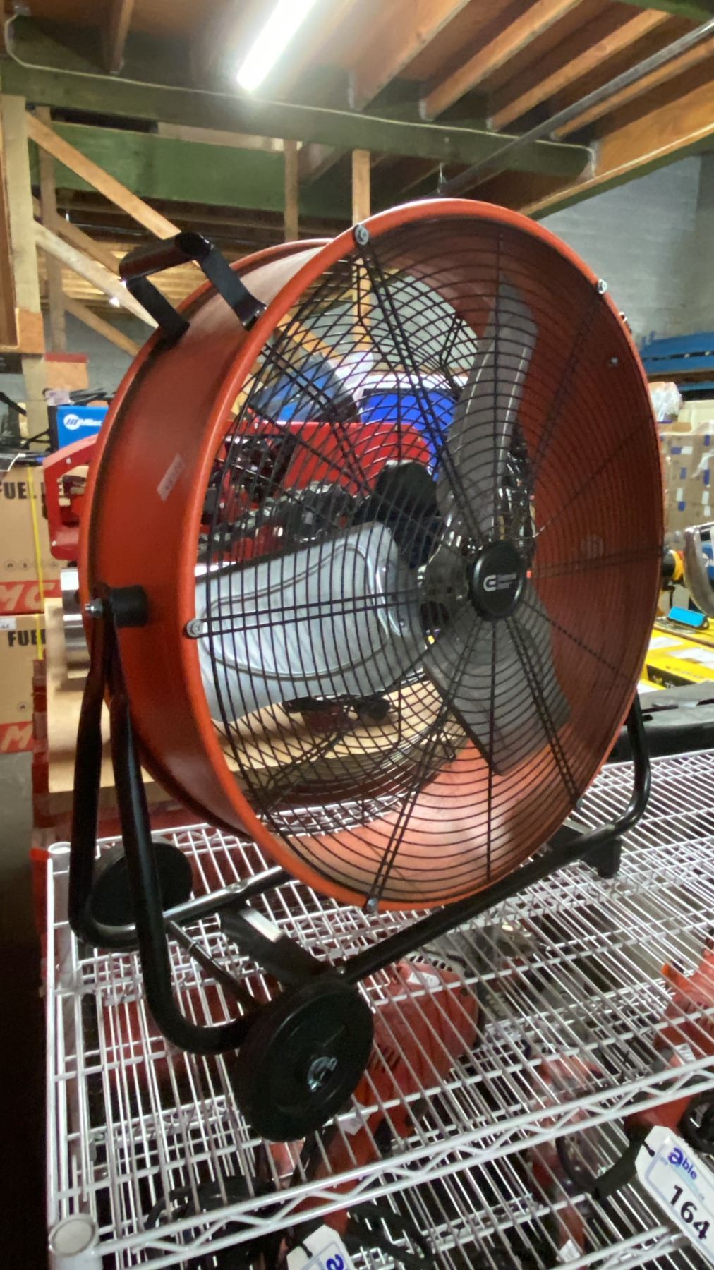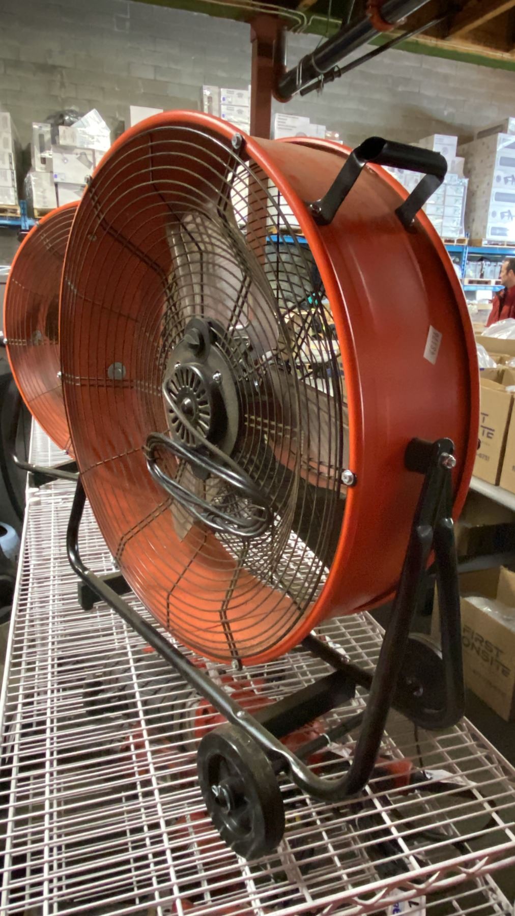COMMERCIAL ELECTRIC ORANGE METAL MOBILE FLOOR FAN