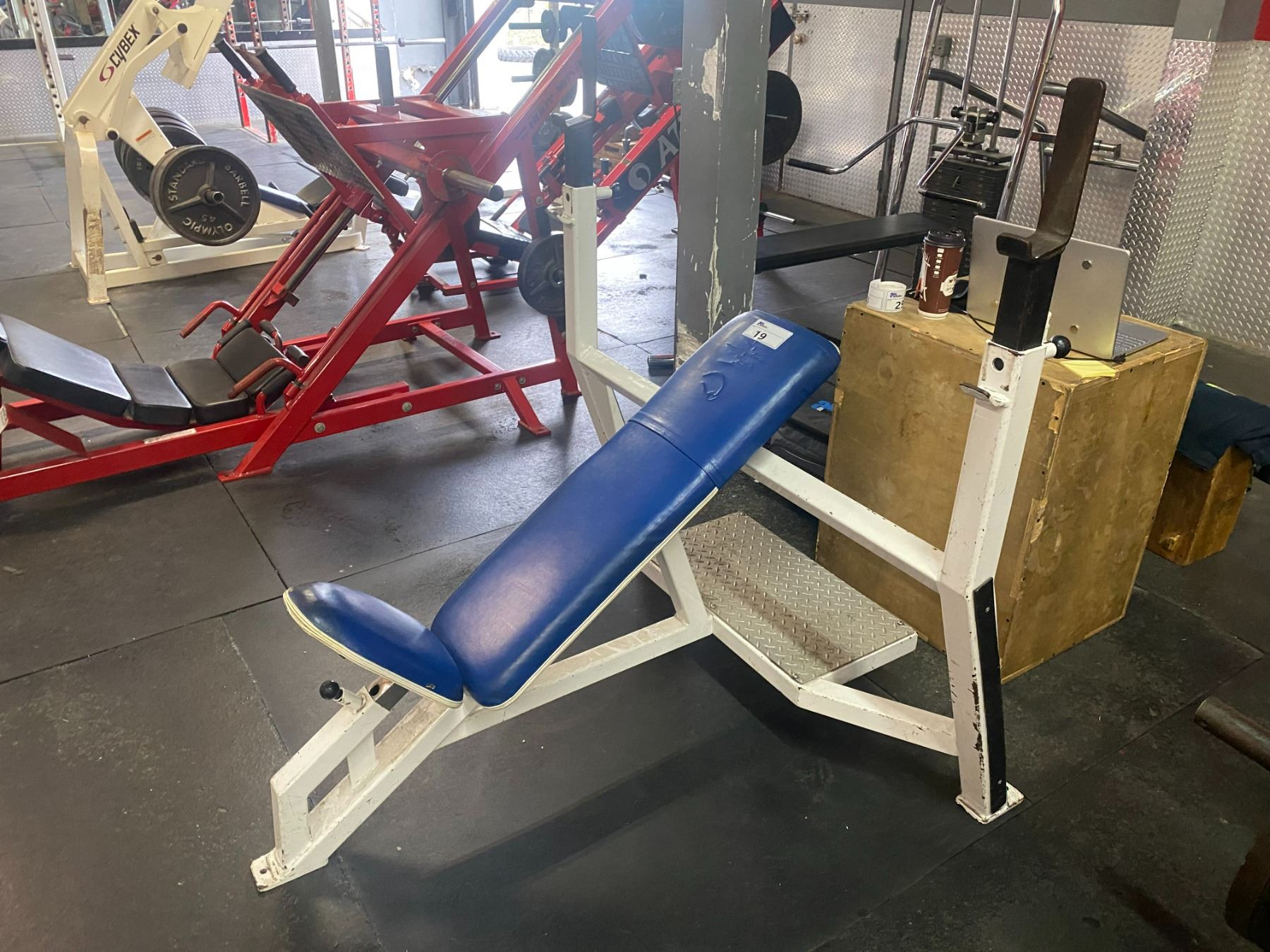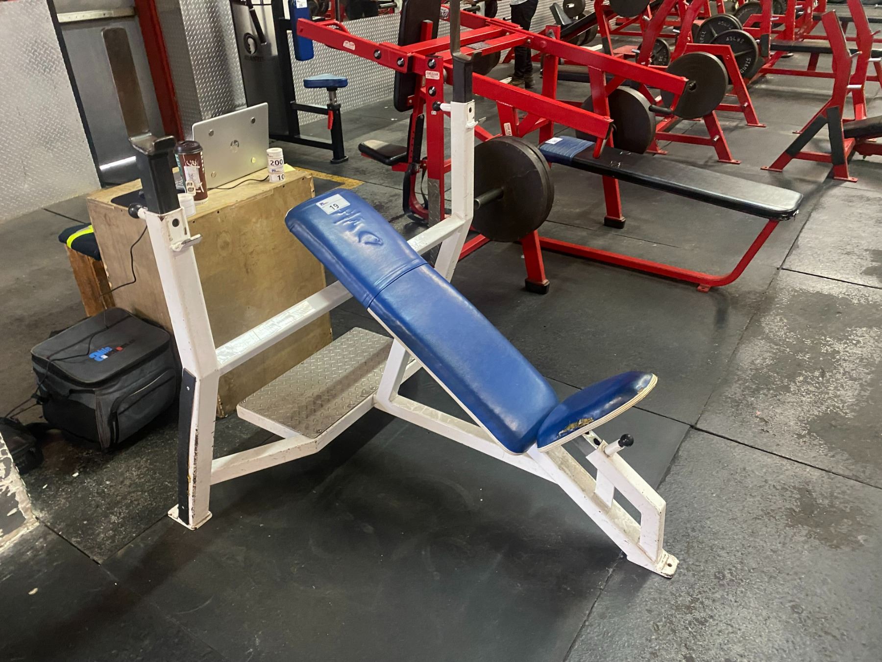 COMMERCIAL INCLINED FREE WEIGHT BENCH PRESS (NO BAR, NO WEIGHTS)