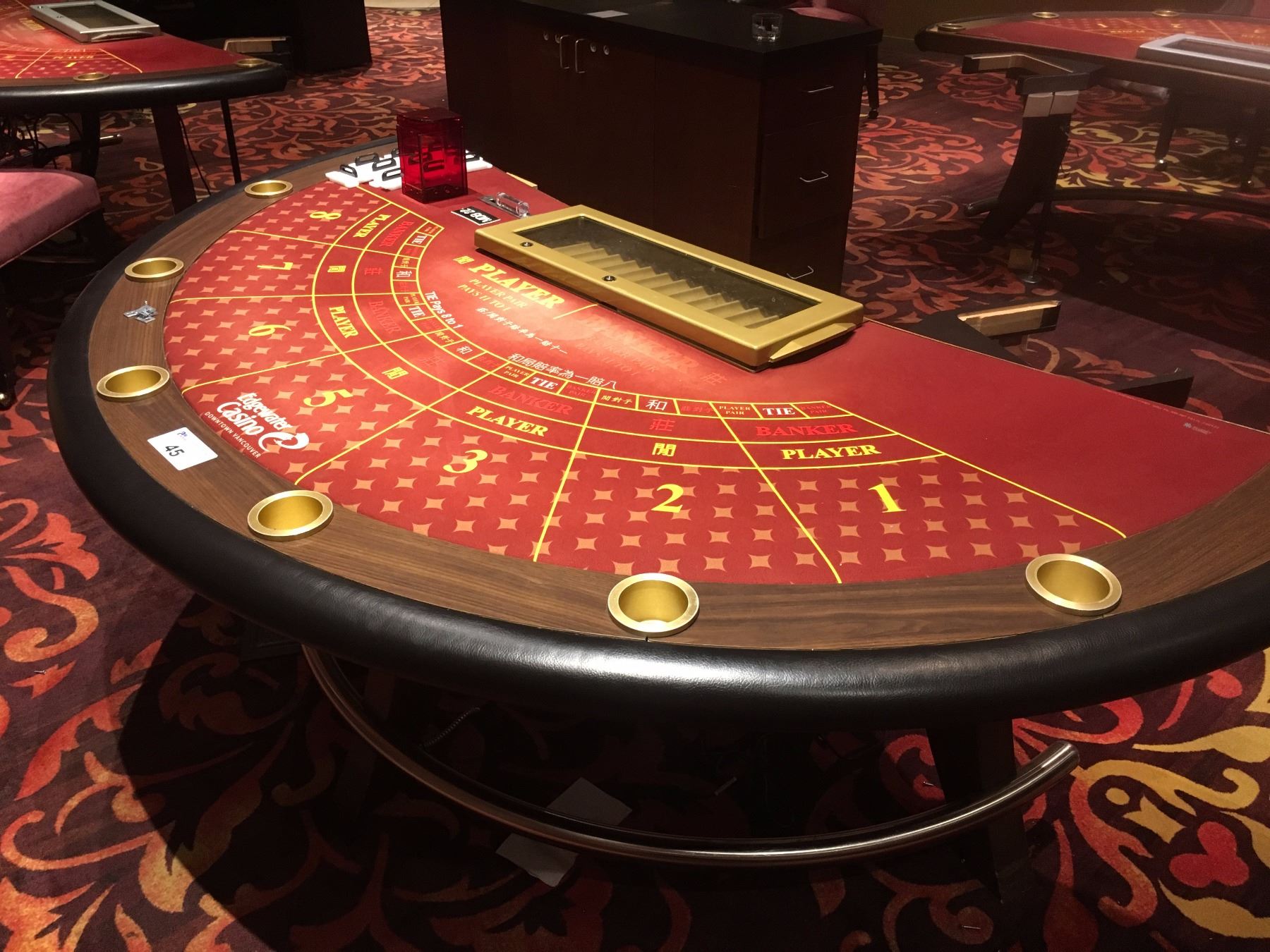 COMMERCIAL QUALITY 8 PLAYER BACCARAT TABLE WITH LOCKING CHIP TRAY AND DROP SAFE