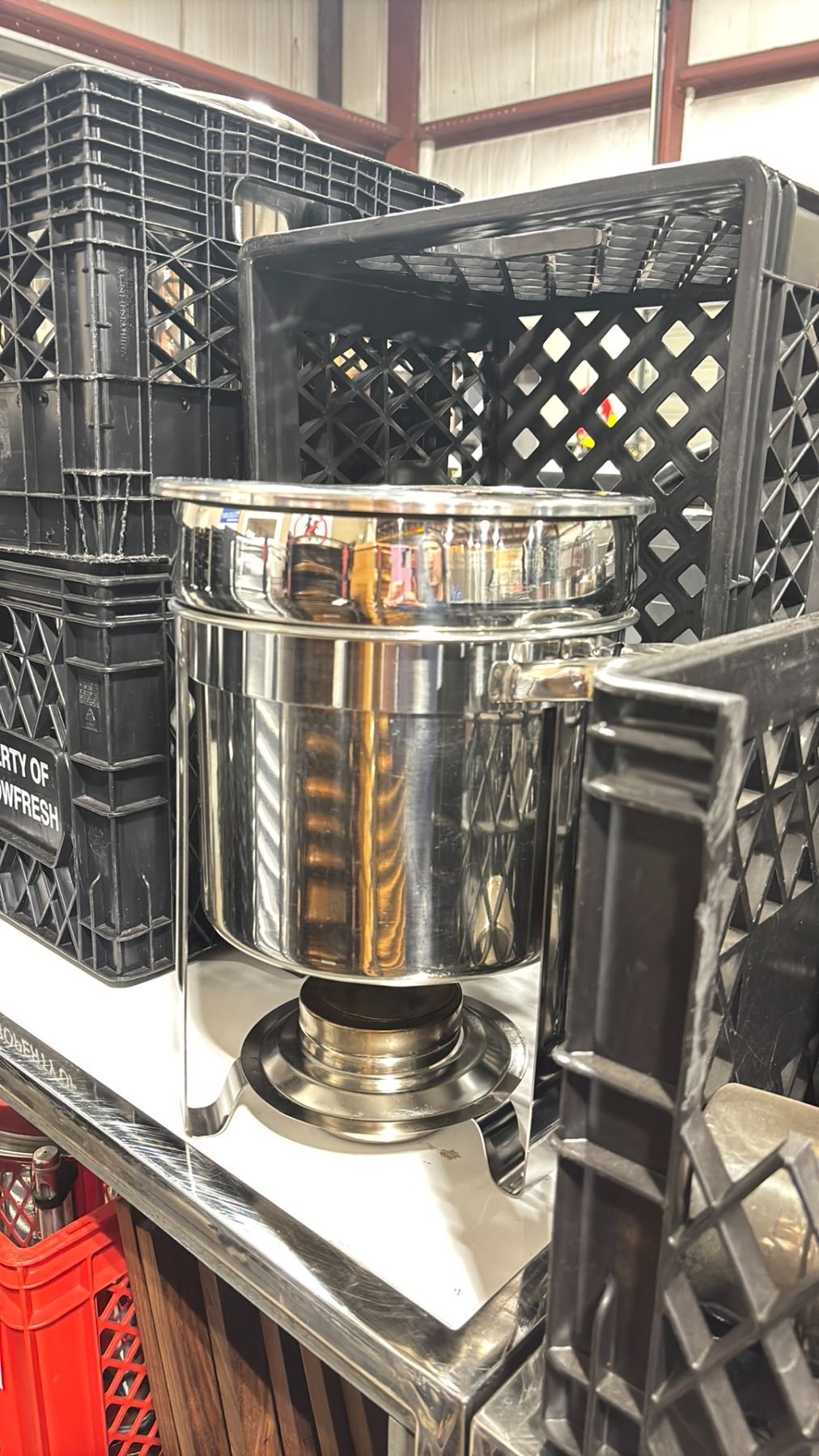 COMMERCIAL STAINLESS STEEL FONDUE POT WITH A 9" DIAMETER