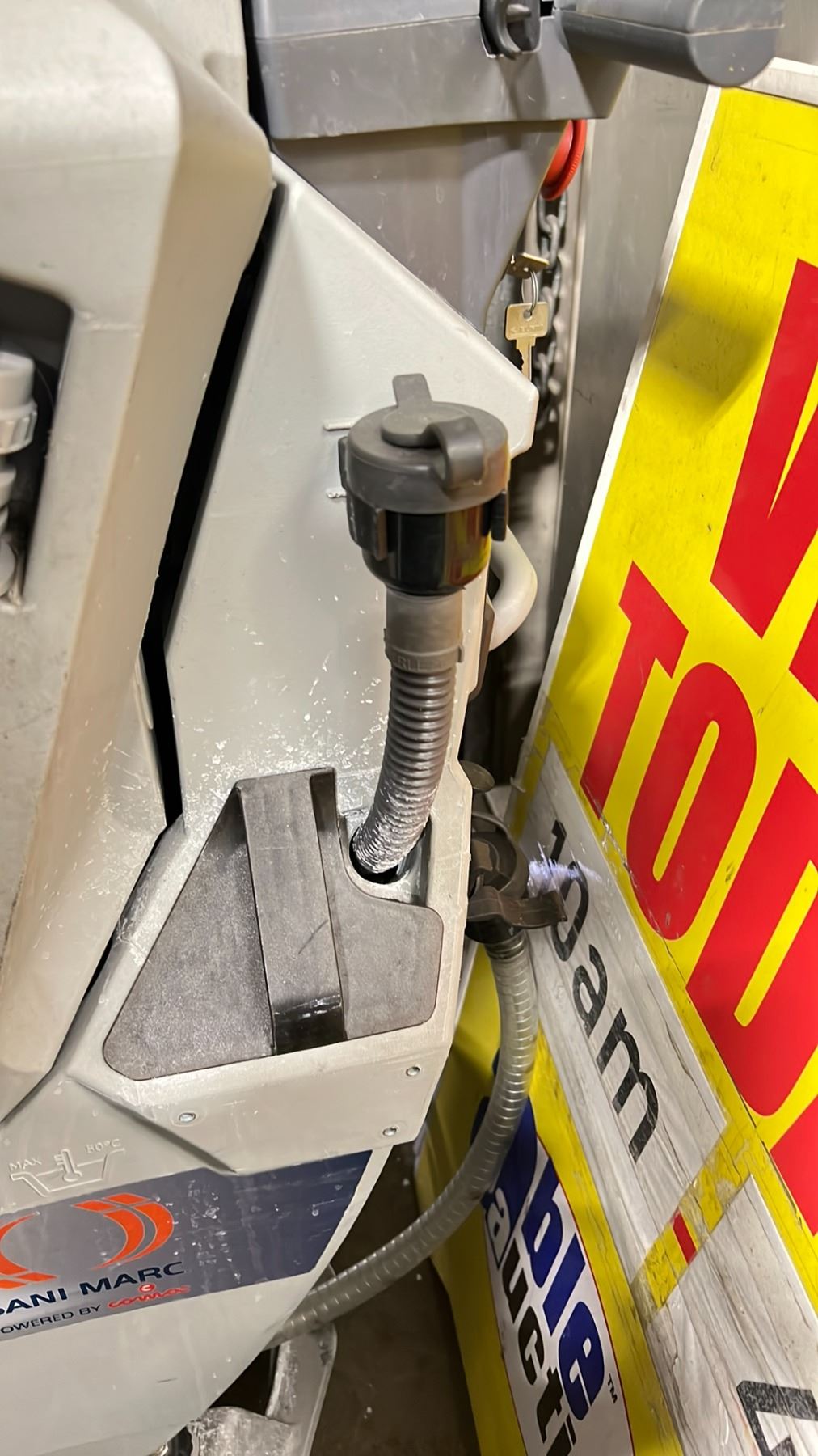 COMOC SANI MARC AW-220BT COMMERCIAL WALK BEHIND ELECTRIC AUTO SCRUBBER WITH KEYS *NO CHARGER*