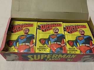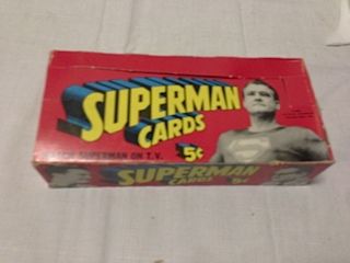 COMPLETE OPEN BOX OF SUPERMAN TV GEORGE REEVES TRADING CARDS 24 COUNT, ALL COMPLETE, ALL PACKS UNOPENED, BOX STILL LOOKS VERY NICE