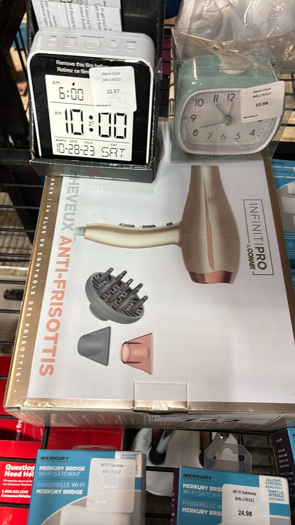 CONAIR INFINITI PRO HAIR DRYER, MERKURY BRIDGE WIFI GATEWAYS & 2 ALARM CLOCKS