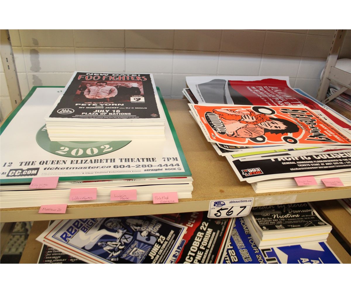 CONCERT POSTER LOT- APPROX 1000 18" X 24" FEAT: LINKIN PARK, WALL FLOWERS, ALKALINE TRIO, MATCHBOX 20, KIDS IN THE HALL, PINK FLOYD EXPERIENCE, NECKO CASE, SPARTA, ELLEN DEGENERESS, TRAVIS + MORE PLUS "11 X 17" FOO FIGHTERS, ERIC IDLE (MONTY PYTHON) EELS,