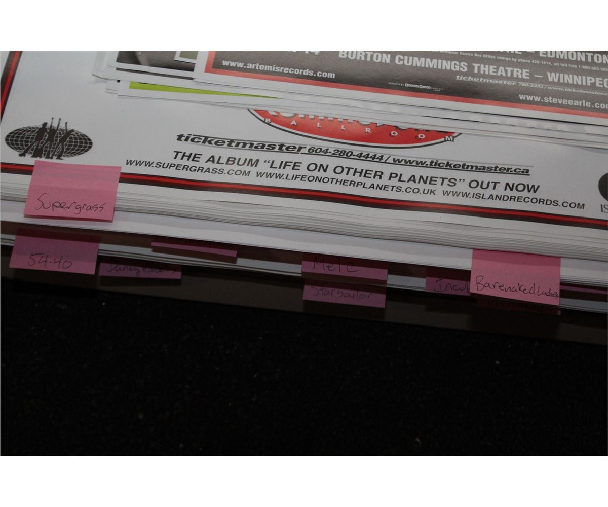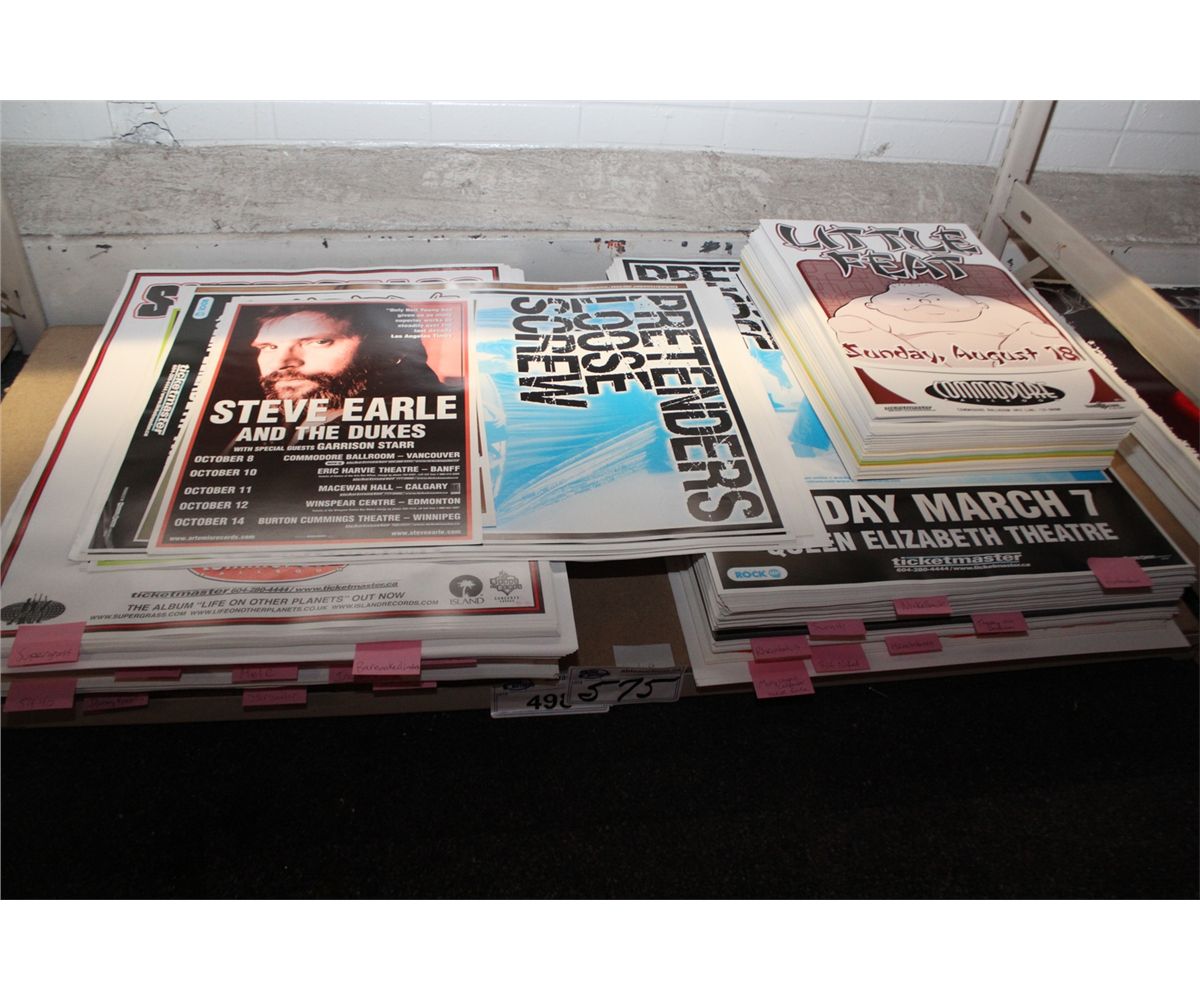 CONCERT POSTER LOT: APPROX. 1000 , INC: SIZE 18"X24" (APPROX. 40-70 EA) HEADSTONES, THE PRETENDERS, INCUBUS, SUPERGRASS, BIF NAKED, NICKELBACK, SUM 41. SIZE 11"X14" STEVE EARLE, GRANDADDY, HAWKSLEY, LITTLE FEAT & MORE