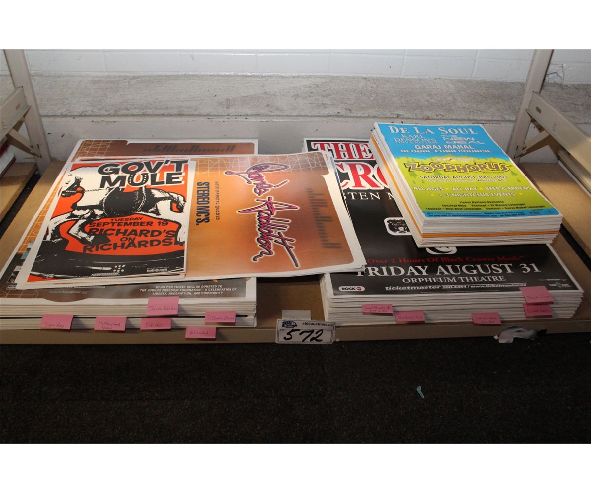 CONCERT POSTER LOT: APPROX. 1000 , INC: SIZE 18"X24" (APPROX. 40-70 EA) JANES ADDICTION, STRING CHEESE INCIDENT, BIF NAKED, THE BLACK CROWES, 3 DOORS DOWN, SOUND TRACK OF OUR LIVES. SIZE 11"X14" APPROX. 40. INCL: MATCHBOX 20, LES SAVY FAV, BONNIE PRINCE
