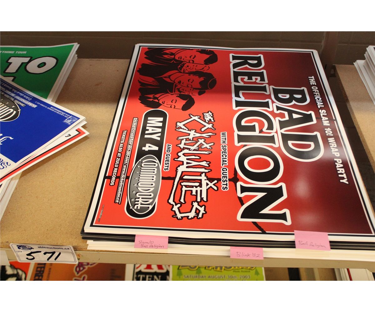 CONCERT POSTER LOT: APPROX. 500, INC: SIZE 18"X24" (APPROX. 40-70 EA) THE DAMNED, FACE TO FACE, KORN, HENRY ROLLINS, DEFTONES, BAD RELIGION, BLINK 182 AND MORE.