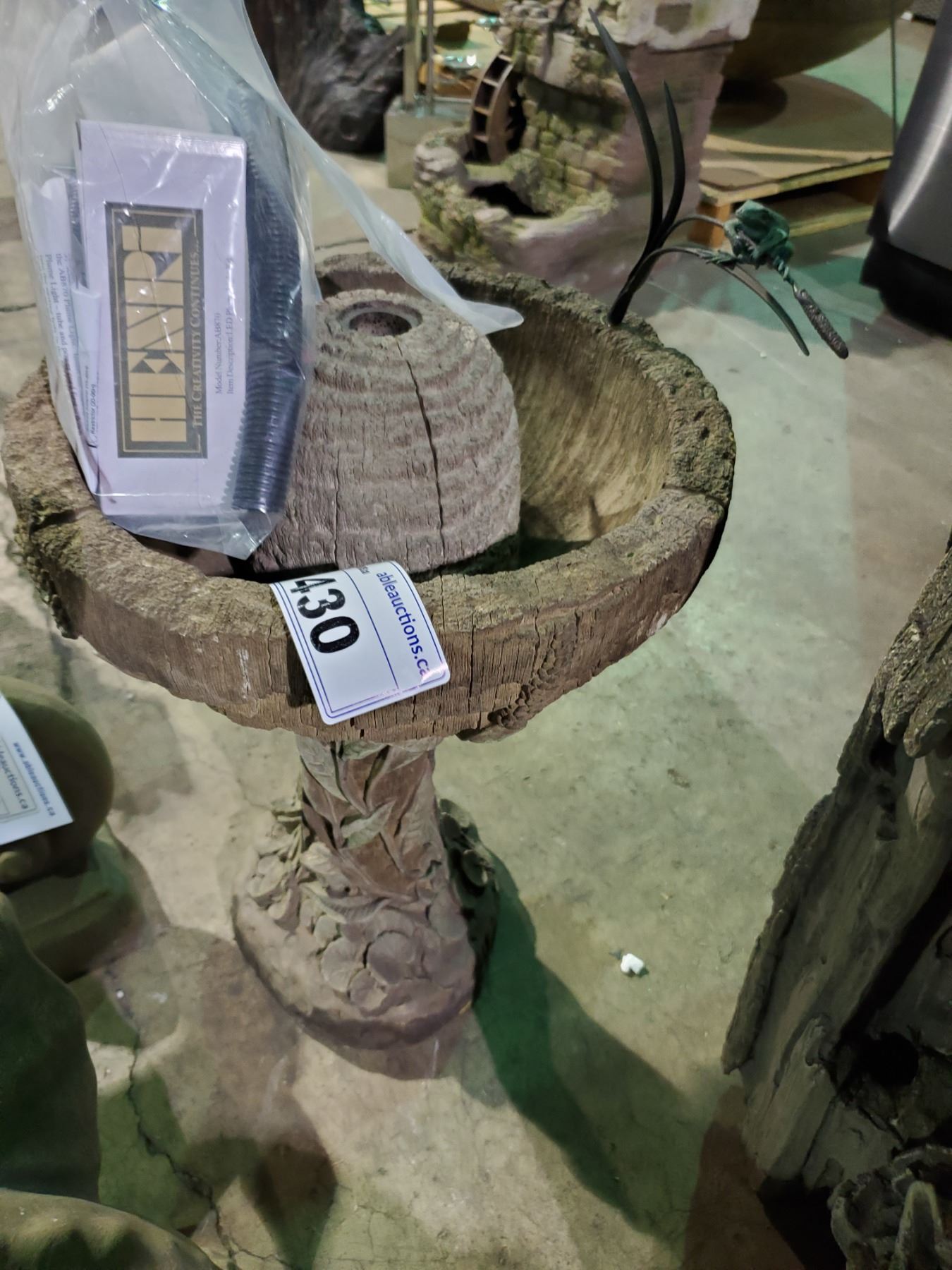CONCRETE BIRDBATH WITH PUMP 21' HEIGHT