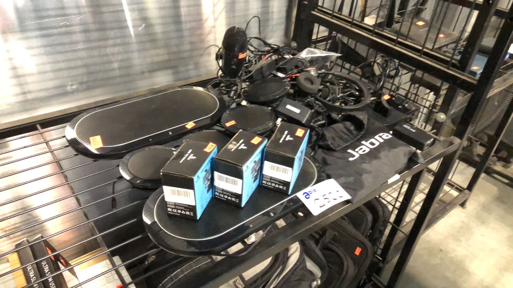 CONFERENCING DEVICES INCL JABRA HEADPHONE/MIC, NEXIGO WEBCAM (IN BOXES), BLUE USB MIC AND MORE