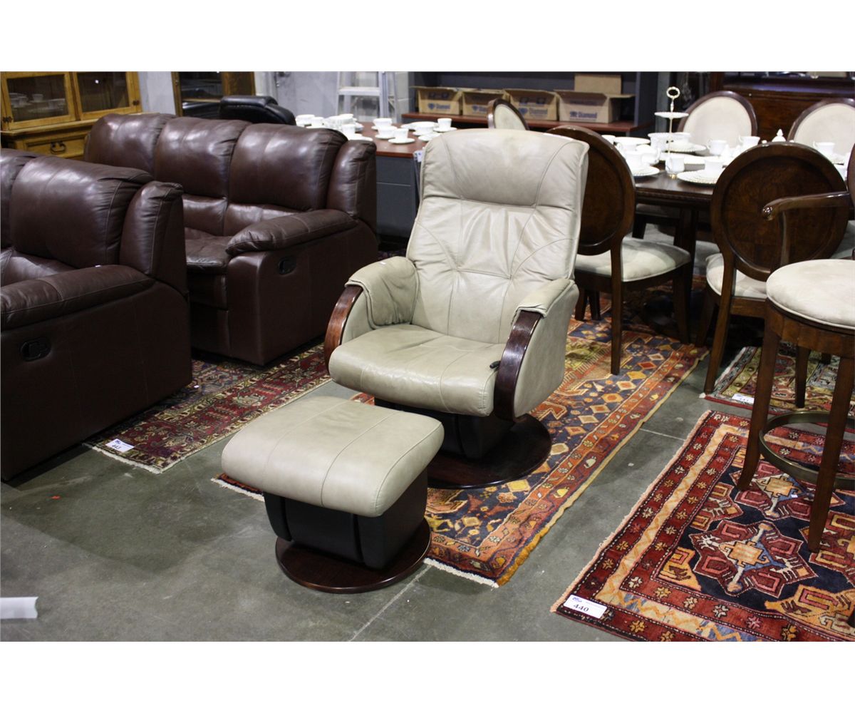 CONTEMPORARY BEIGE LEATHER GLIDER ROCKER WITH MATCHING OTTOMAN