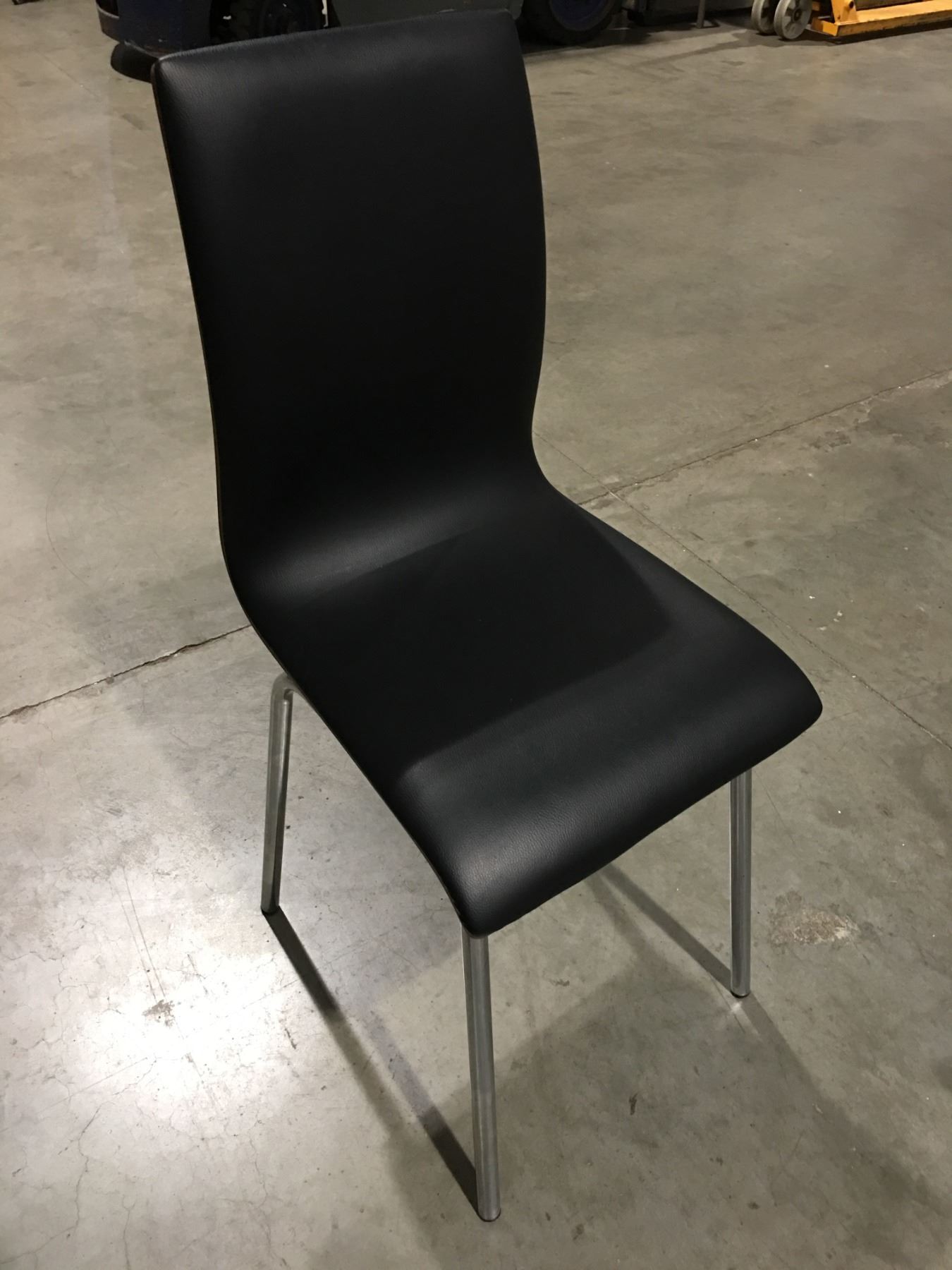CONTEMPORARY DINING CHAIR BENT WOOD TEAK FINISH WITH CHROME LEGS & BLACK VINYL UPHOLSTERED SEAT CUSHION