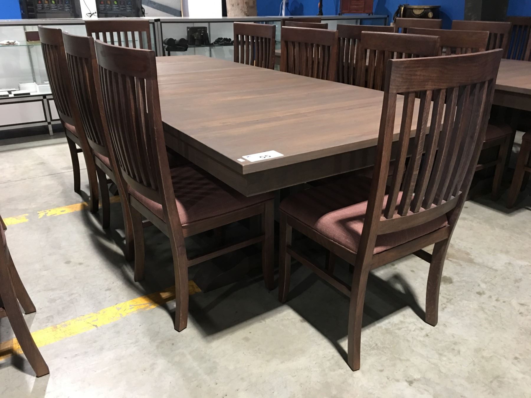 CONTEMPORARY DRIFT OAK DINING TABLE WITH 2 LEAVES & 8 CHAIRS