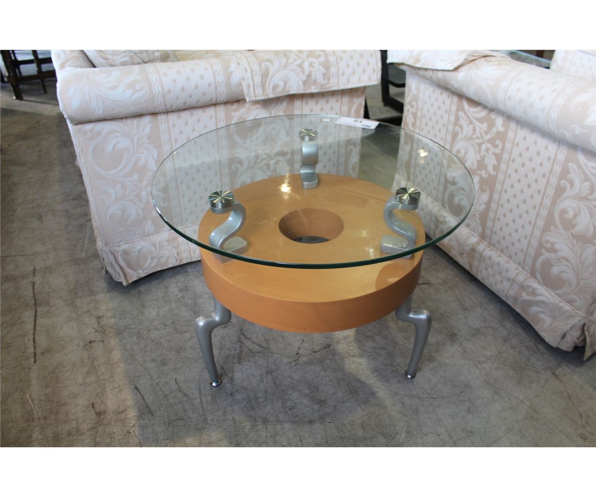 CONTEMPORARY GLASS TOP ROUND END TABLE
