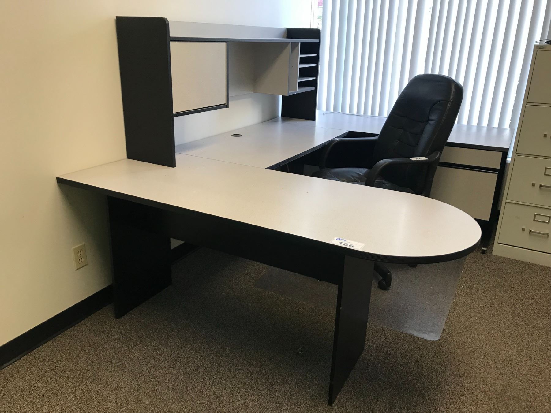 CONTEMPORARY GREY & BLACK U-SHAPED OFFICE DESK WITH HUTCH AND CHAIR