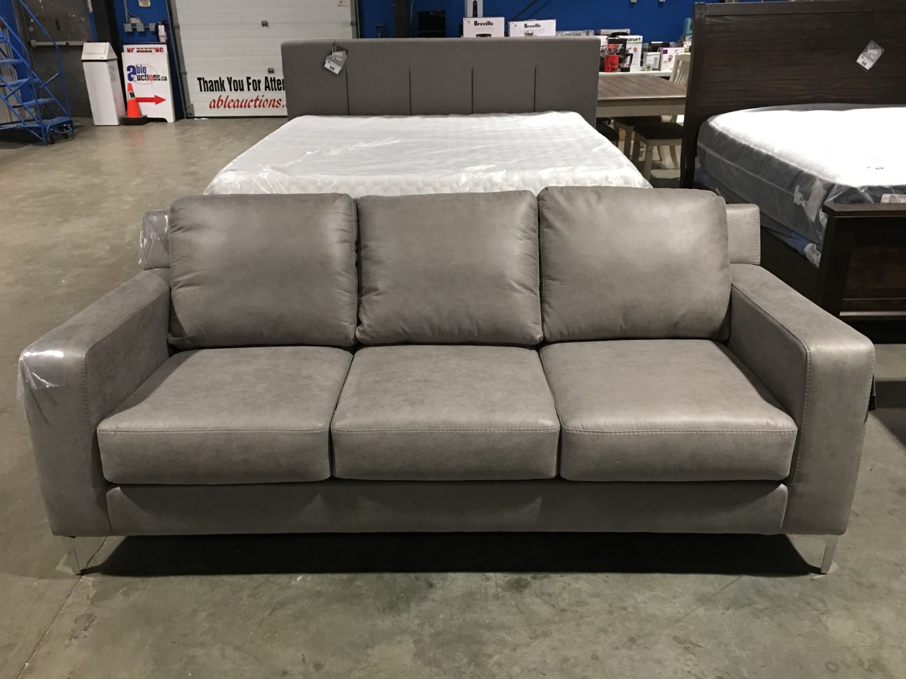 CONTEMPORARY GREY MICRO FIBER UPHOLSTERED 3 SEATER SOFA
