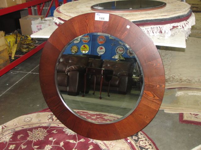 CONTEMPORARY WOOD FRAMED ROUND BEVELLED HANGING WALL MIRROR