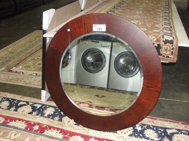 CONTEMPORARY WOOD FRAMED ROUND BEVELLED HANGING WALL MIRROR