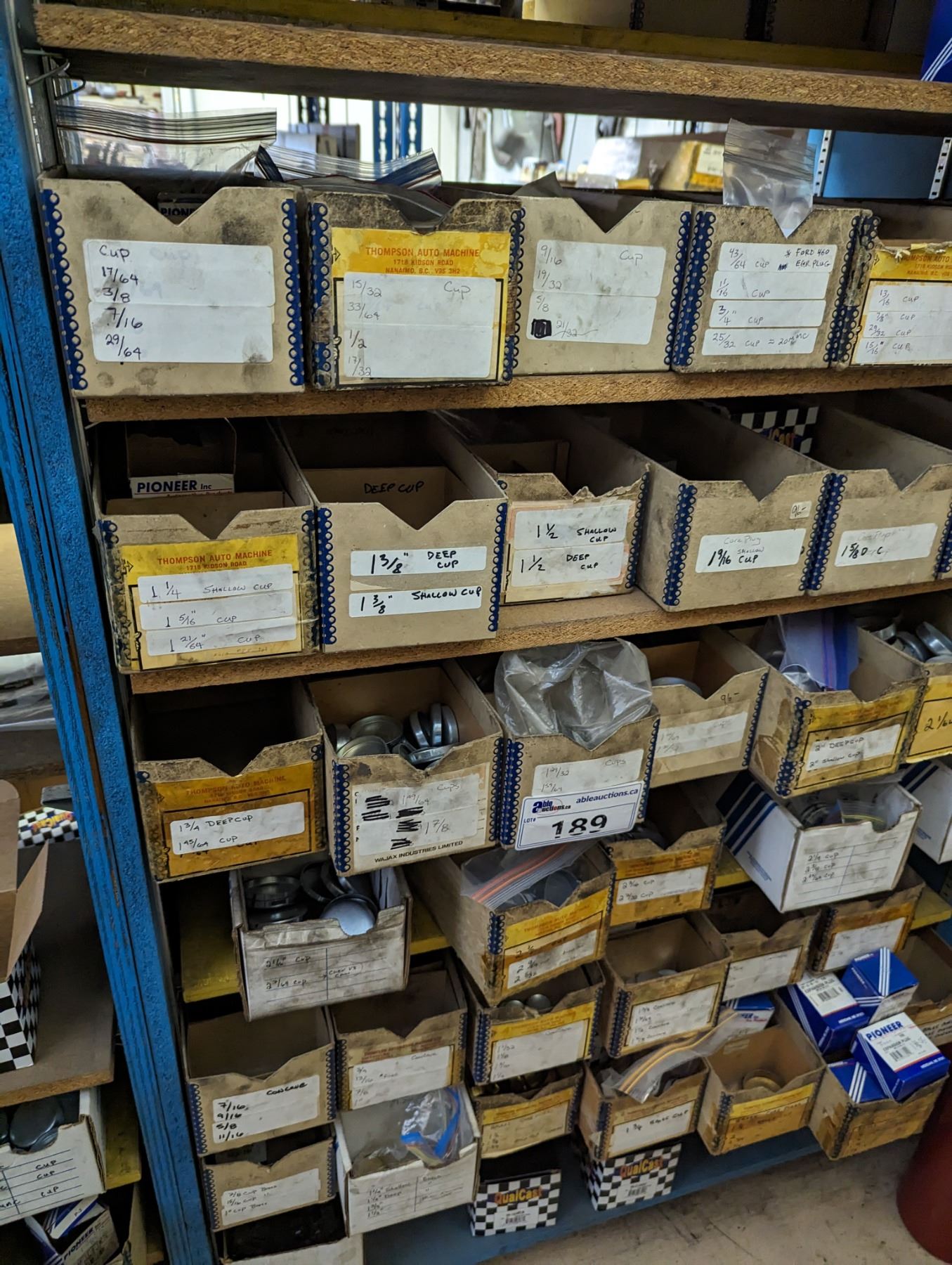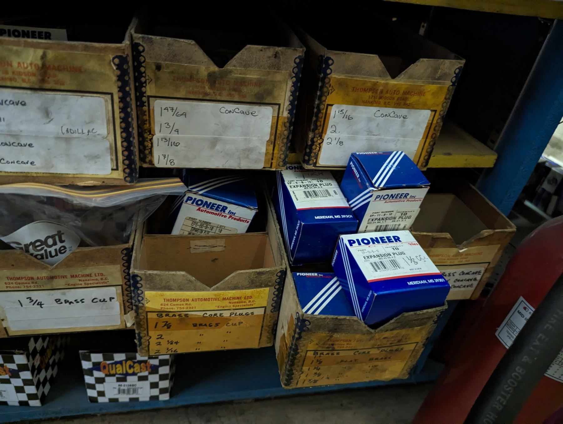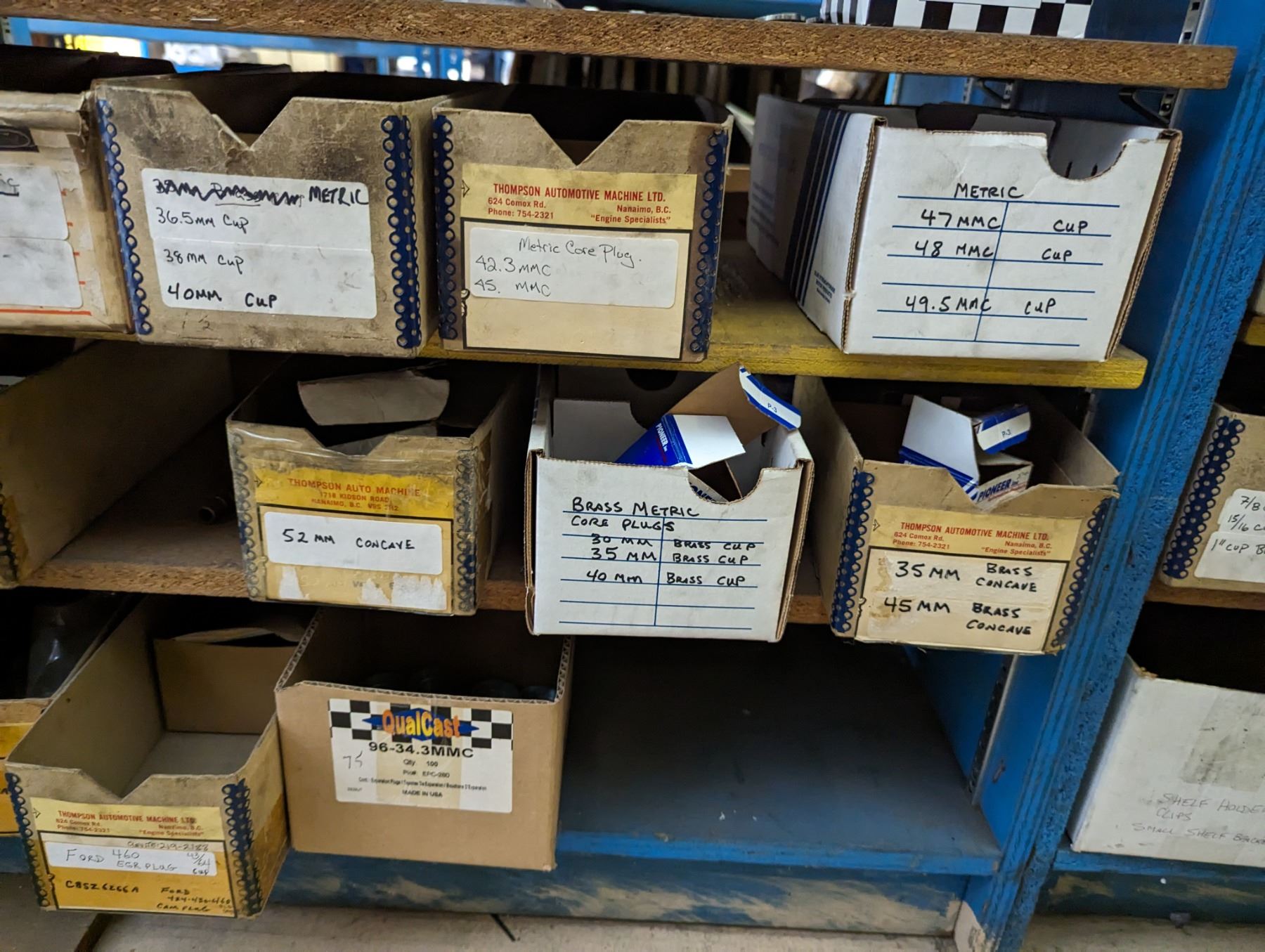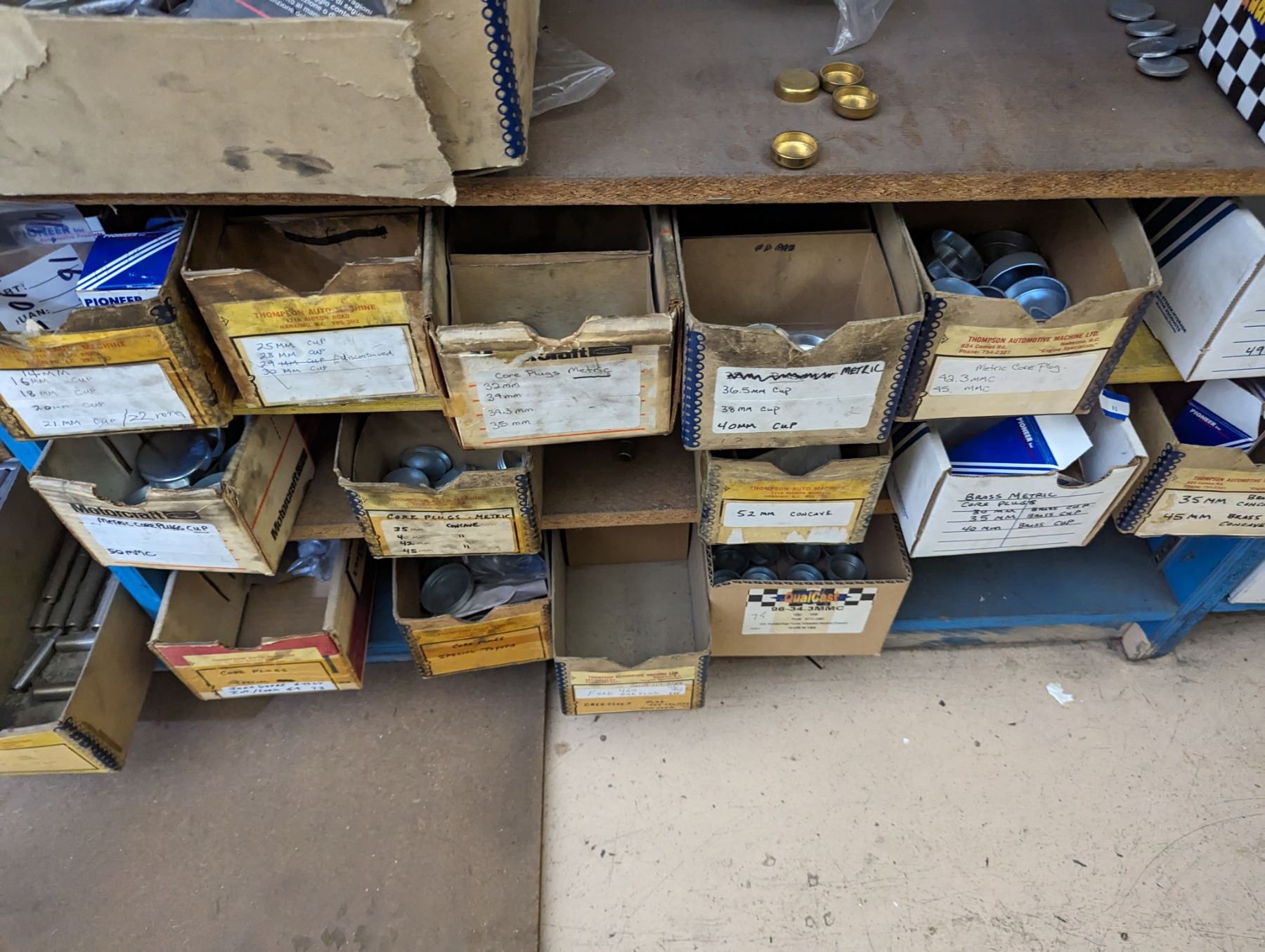 CONTENTS OF 11 SHELVES OF ASSORTED FROST PLUGS FOR ALL MAKES. THOUSANDS OF PIECES