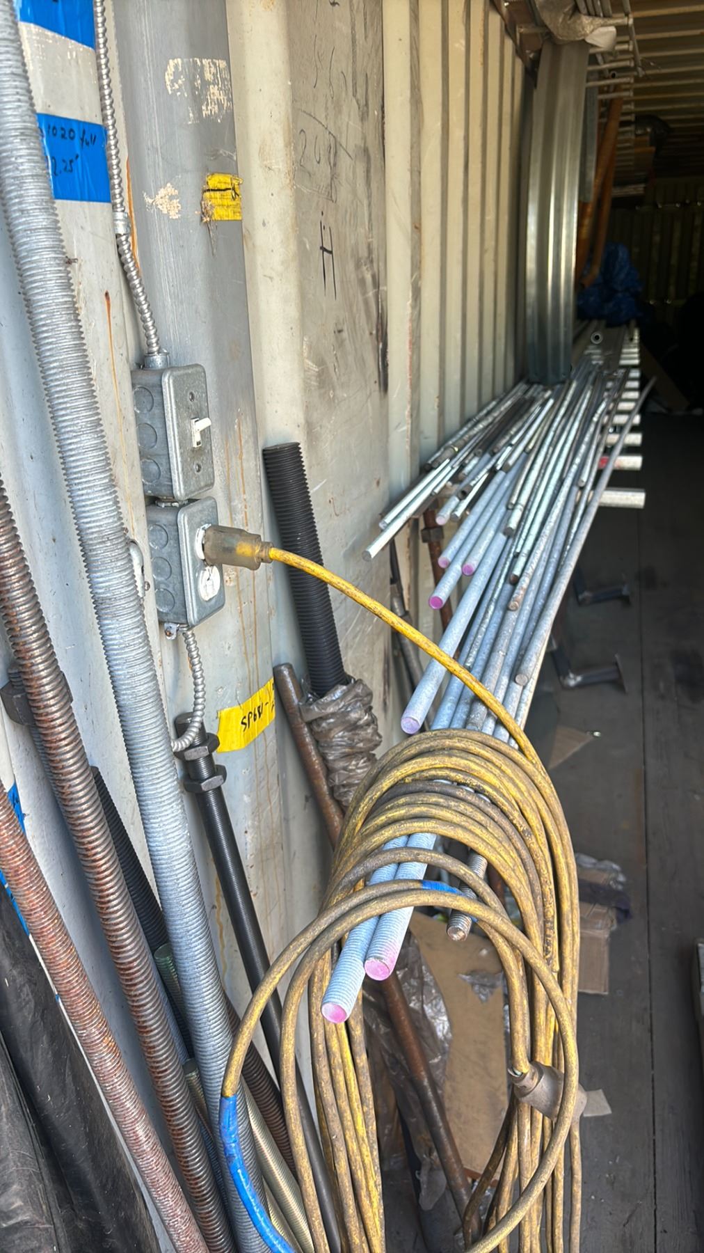 *CONTENTS* OF 40' METAL STORAGE CONTAINER - ASSORTED METAL, THREADED REDDI ROD, ELECTRICAL BOXES & ASSORTED BOXES OF MISCELLANEOUS HOUSEHOLD