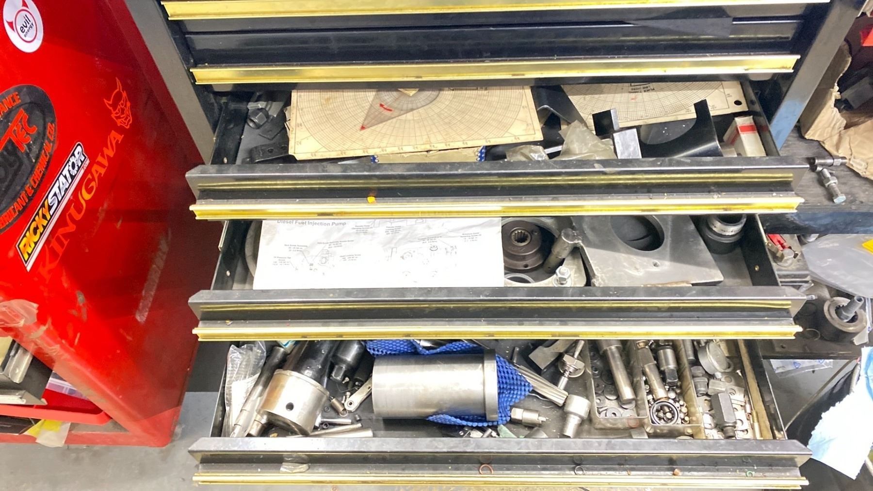 CONTENTS OF 7 DRAWERS OF SPECIALTY DIESEL INJECTION REBUILDING TOOLS. INC MAKES LIKE BOSCH, STANADYNE, DELPHI, CAV, SIMMS, ZEXEL, DENSO ETC. BRING BOXES OR CRATES.