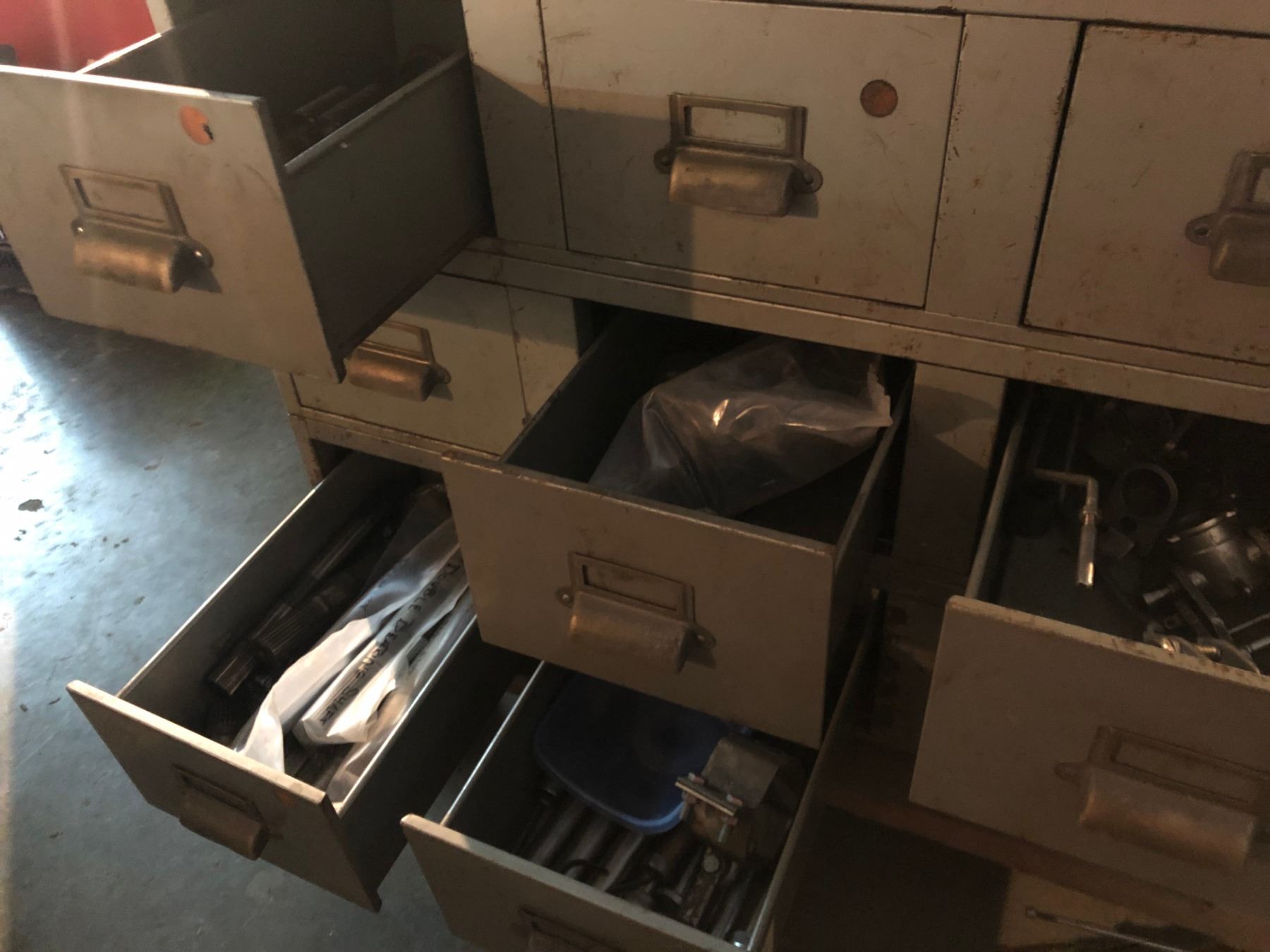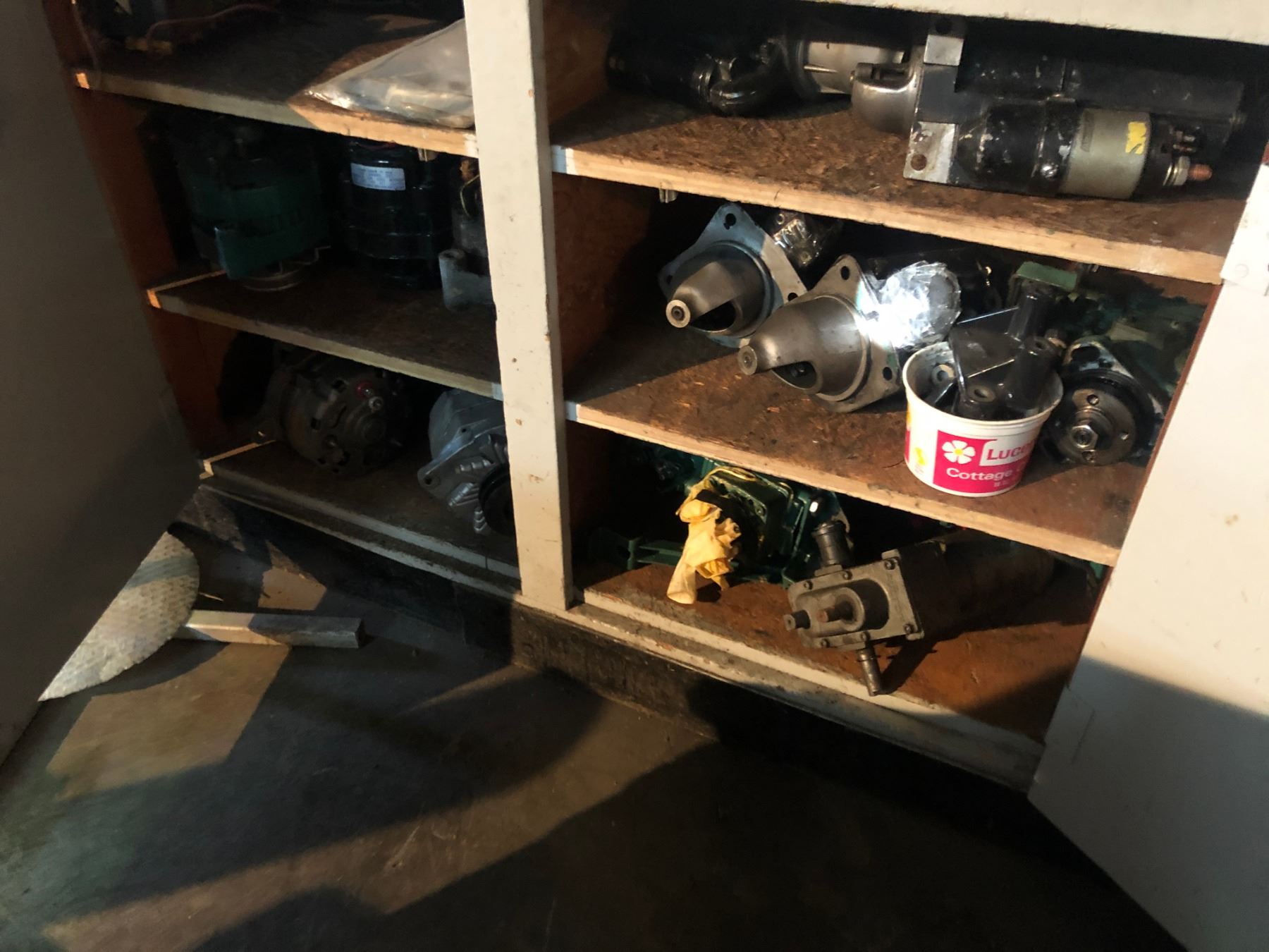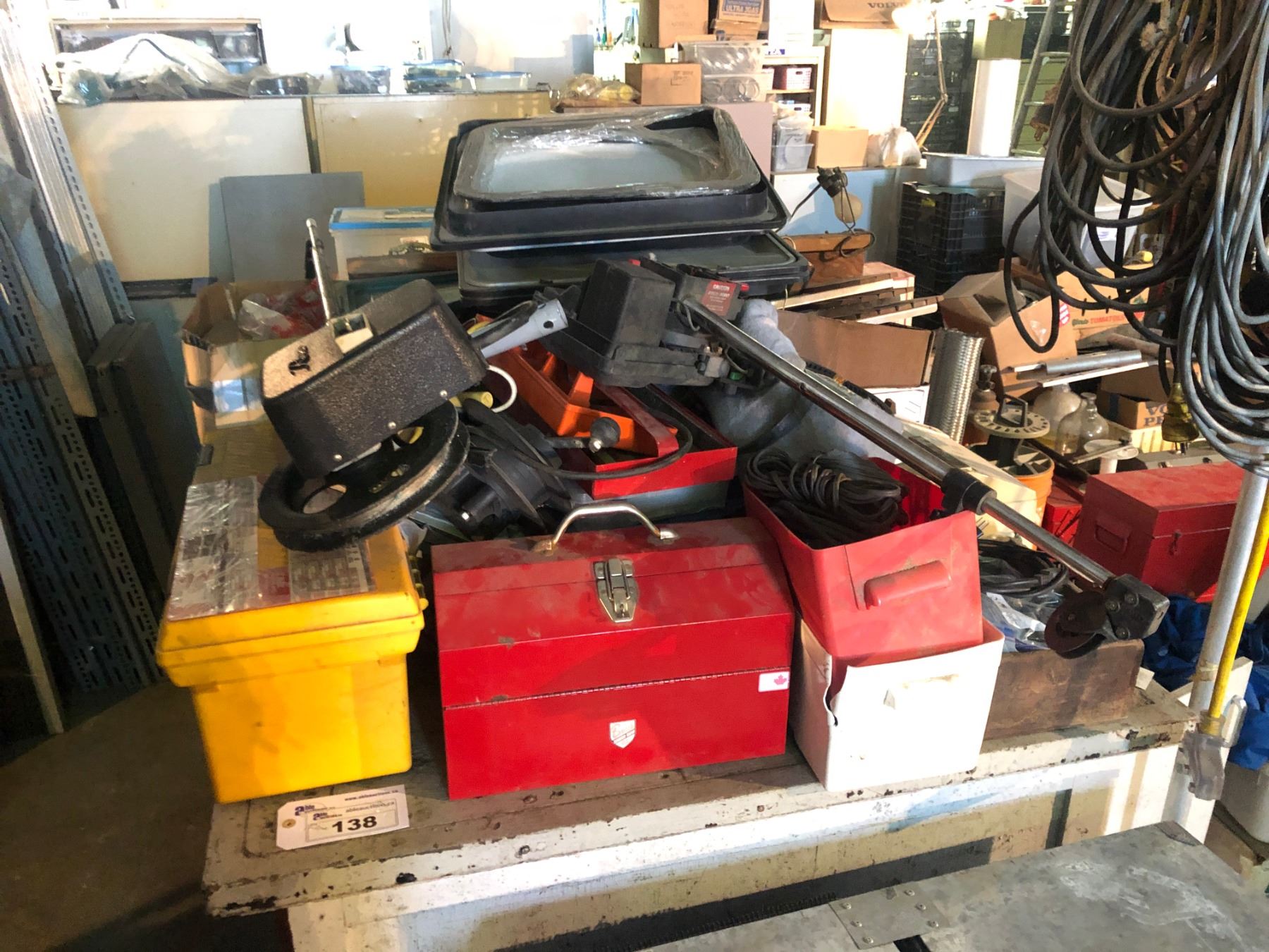 CONTENTS OF AREA/BENCHES INCLUDING ENGINE PARTS, TOOLS AND MORE