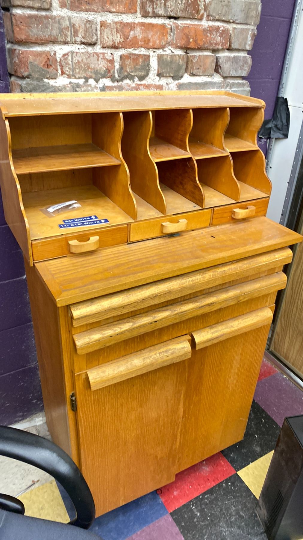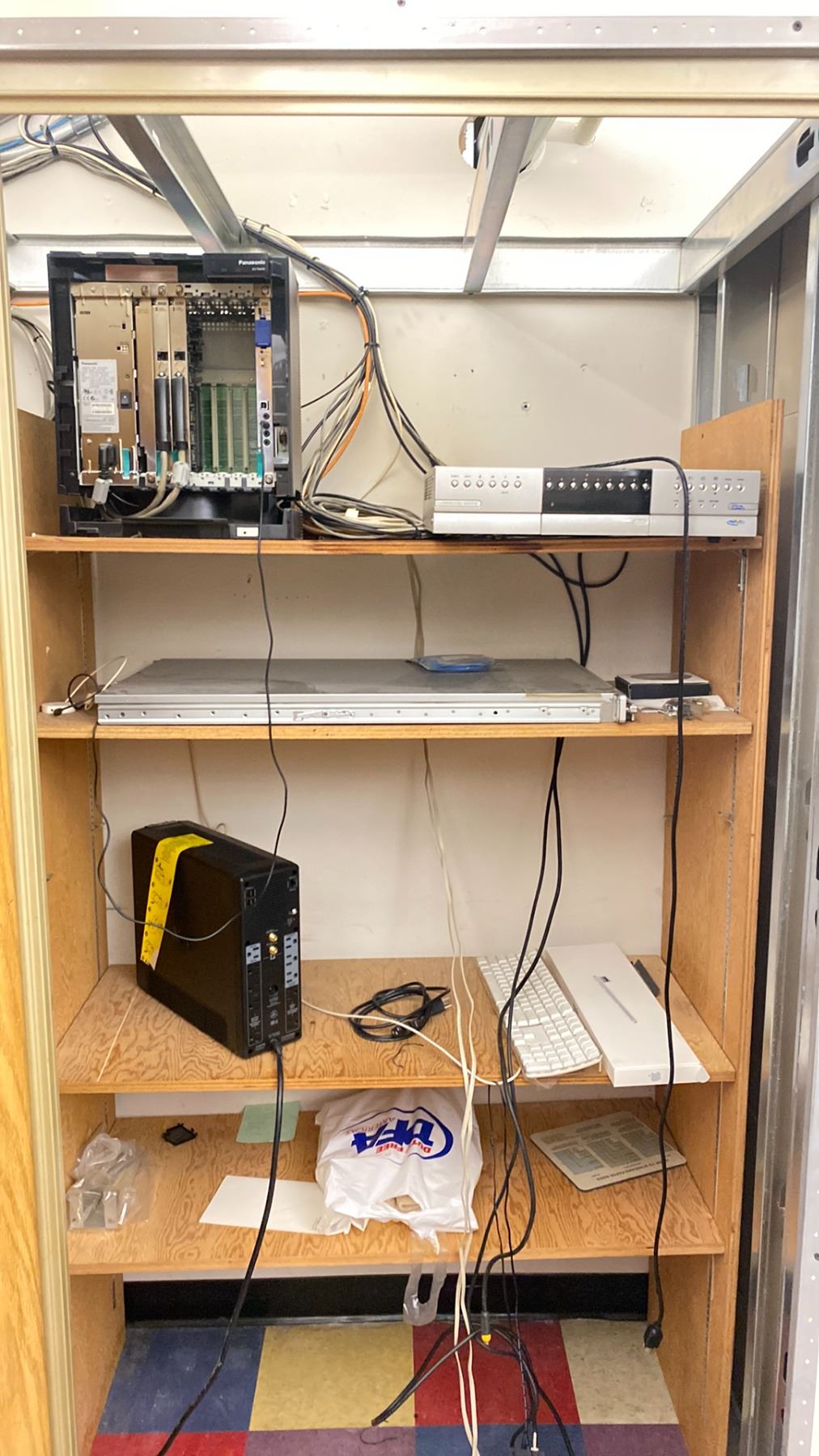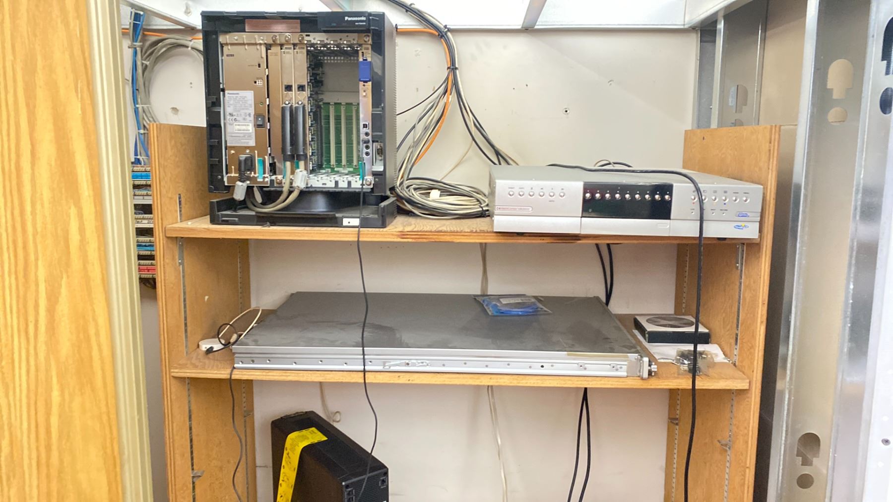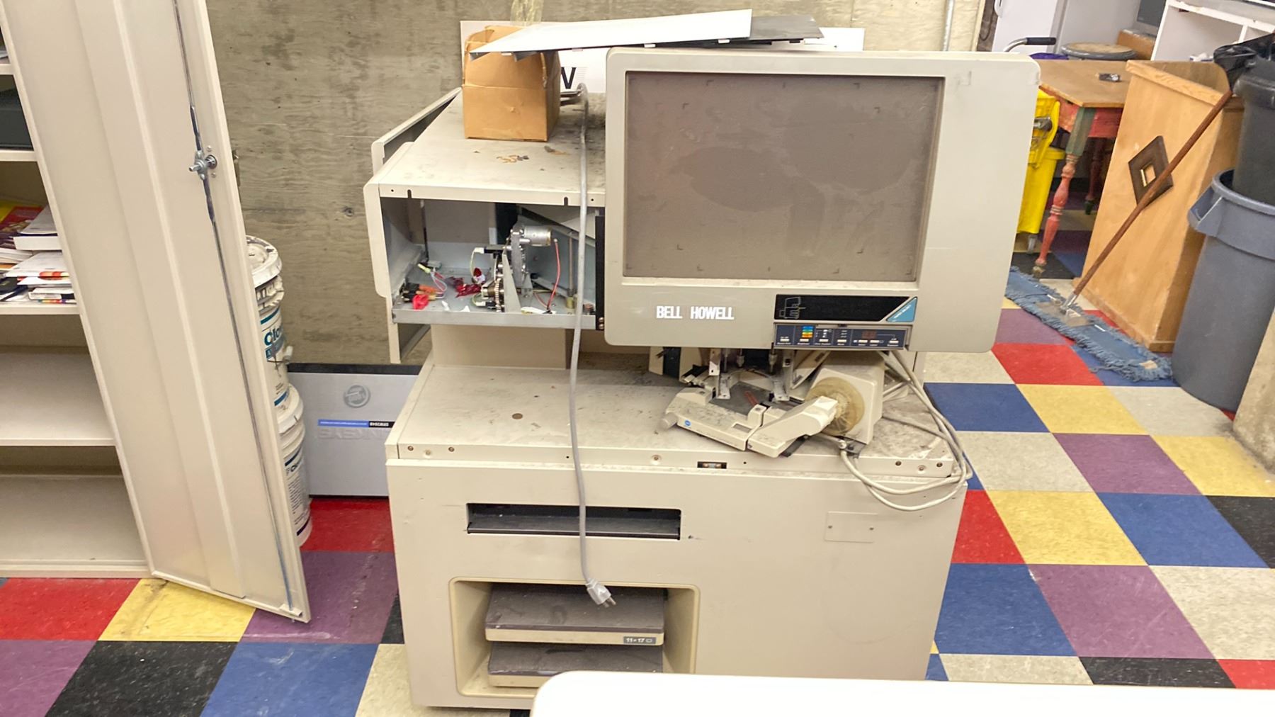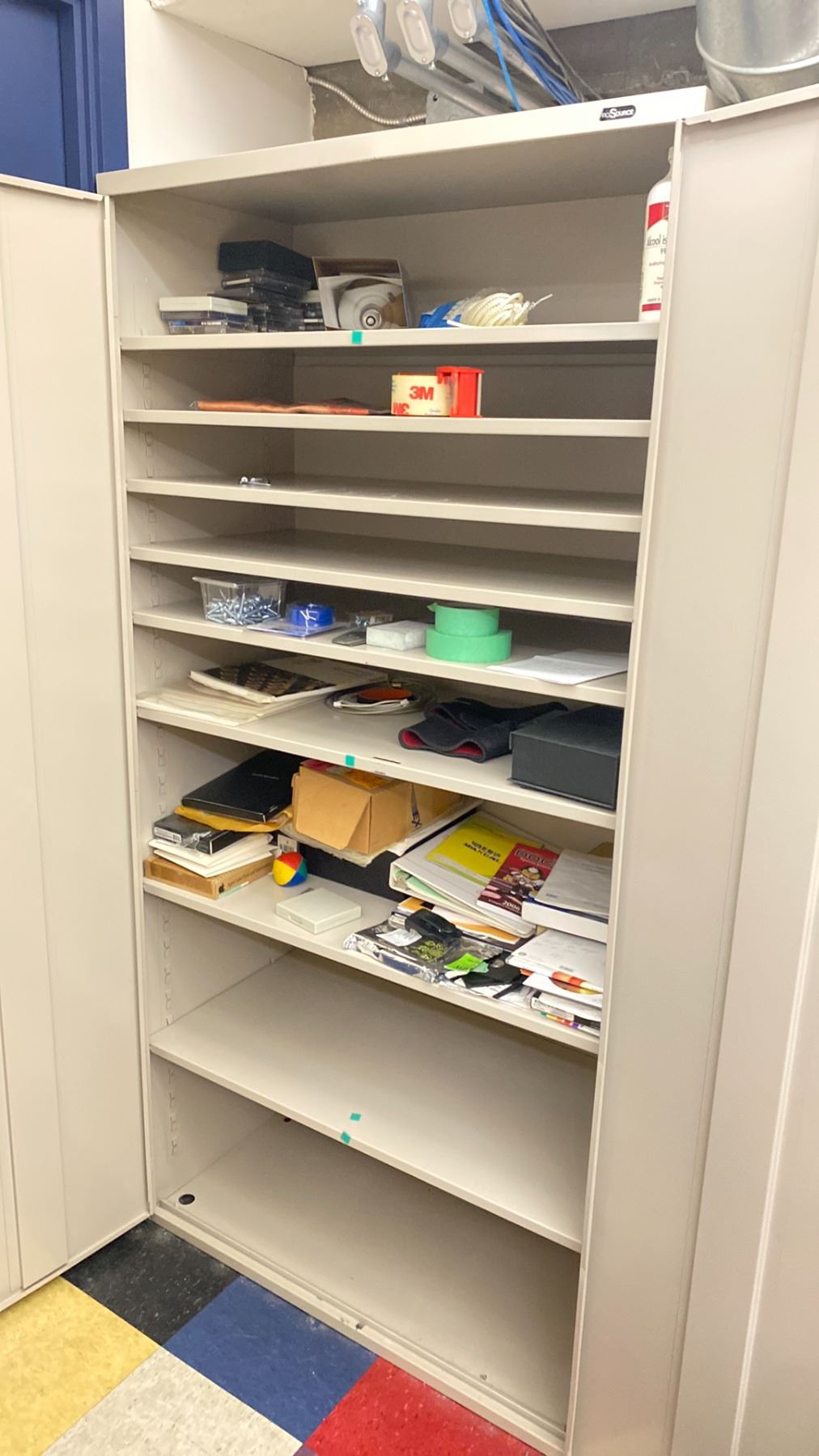 CONTENTS OF BACK OFFICE INCLUDING: METAL 2 DOOR STORAGE CABINET, 2 OFFICE CHAIRS, 2 DESKS, ASSORTED SHELVING, MICROFICHE, & VARIOUS ELECTRONICS