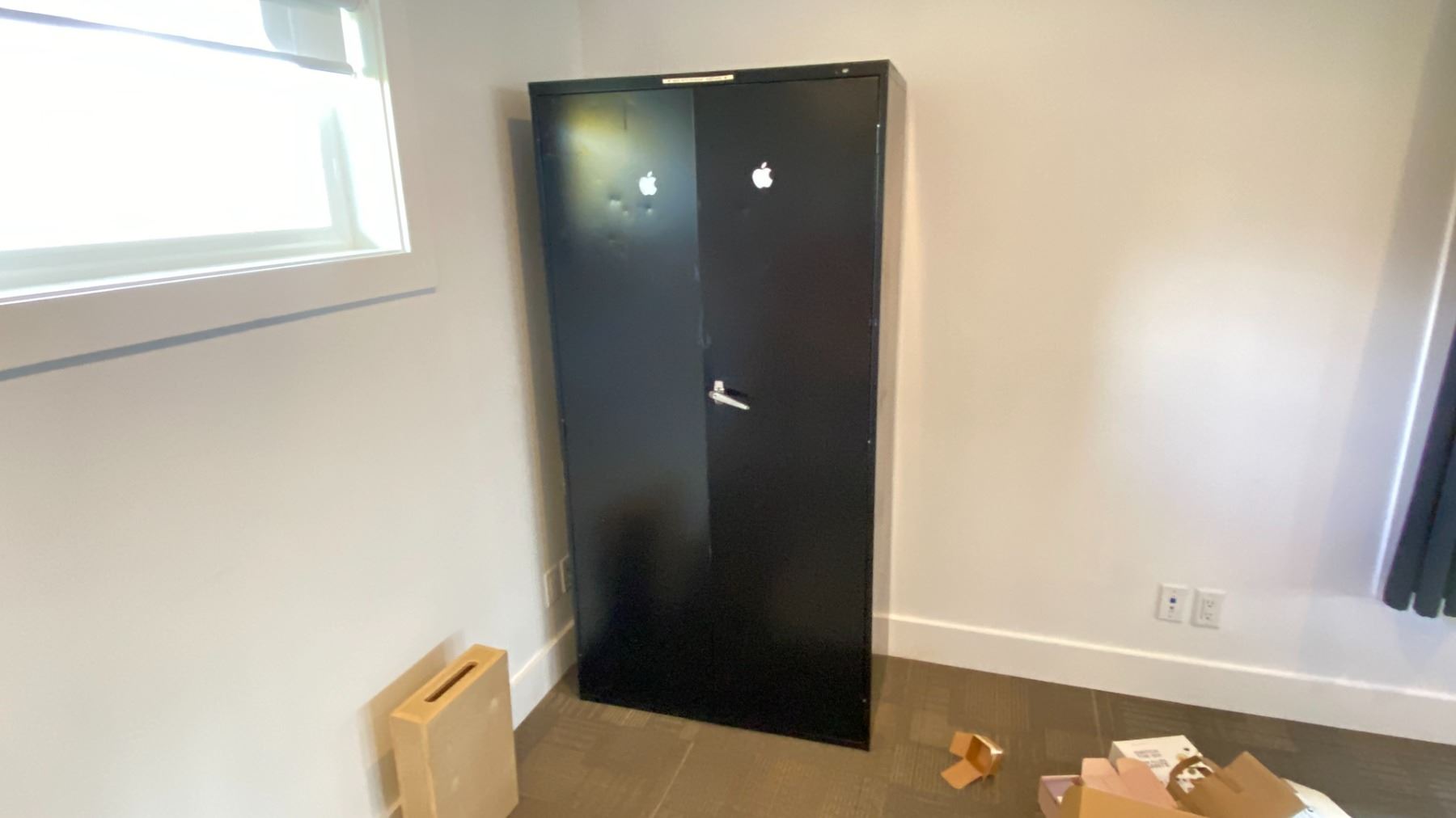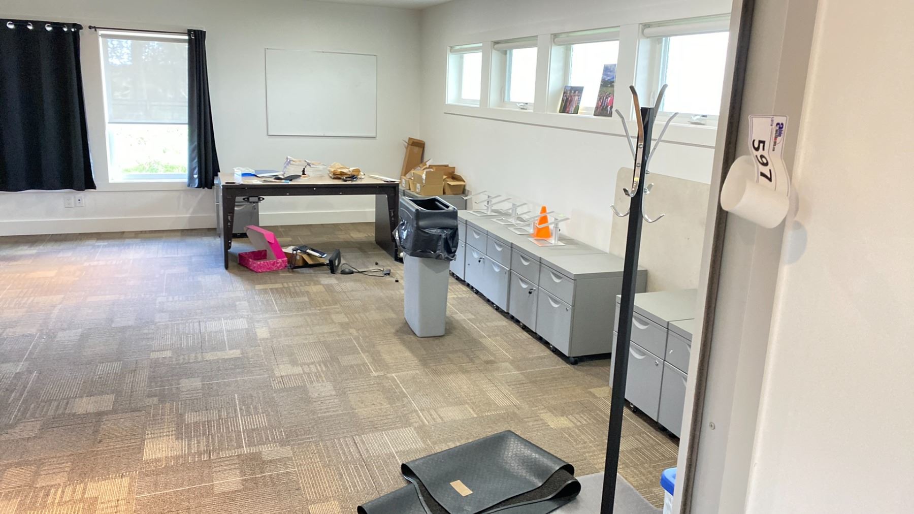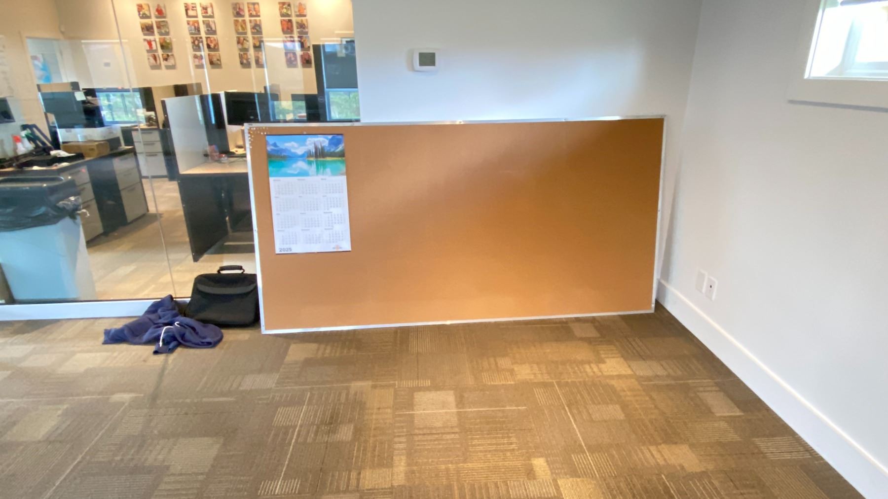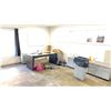 CONTENTS OF BACK ROOM IN HOUSE. 60X30" DESK, 11 2 DRAWER MOBILE PEDESTALS, COAT RACK, 36" W BLACK CABINET, 6'W MOBILE WHITE BOARD, 4'X8' CORK BOARD LOCATED IN HOUSE
