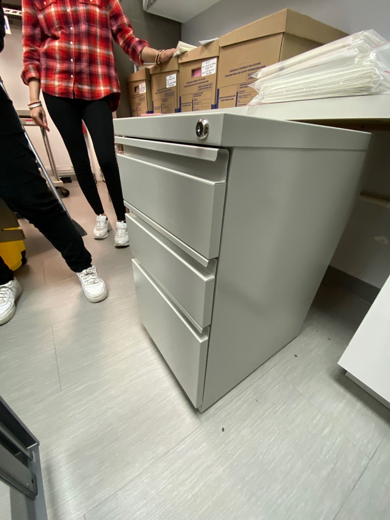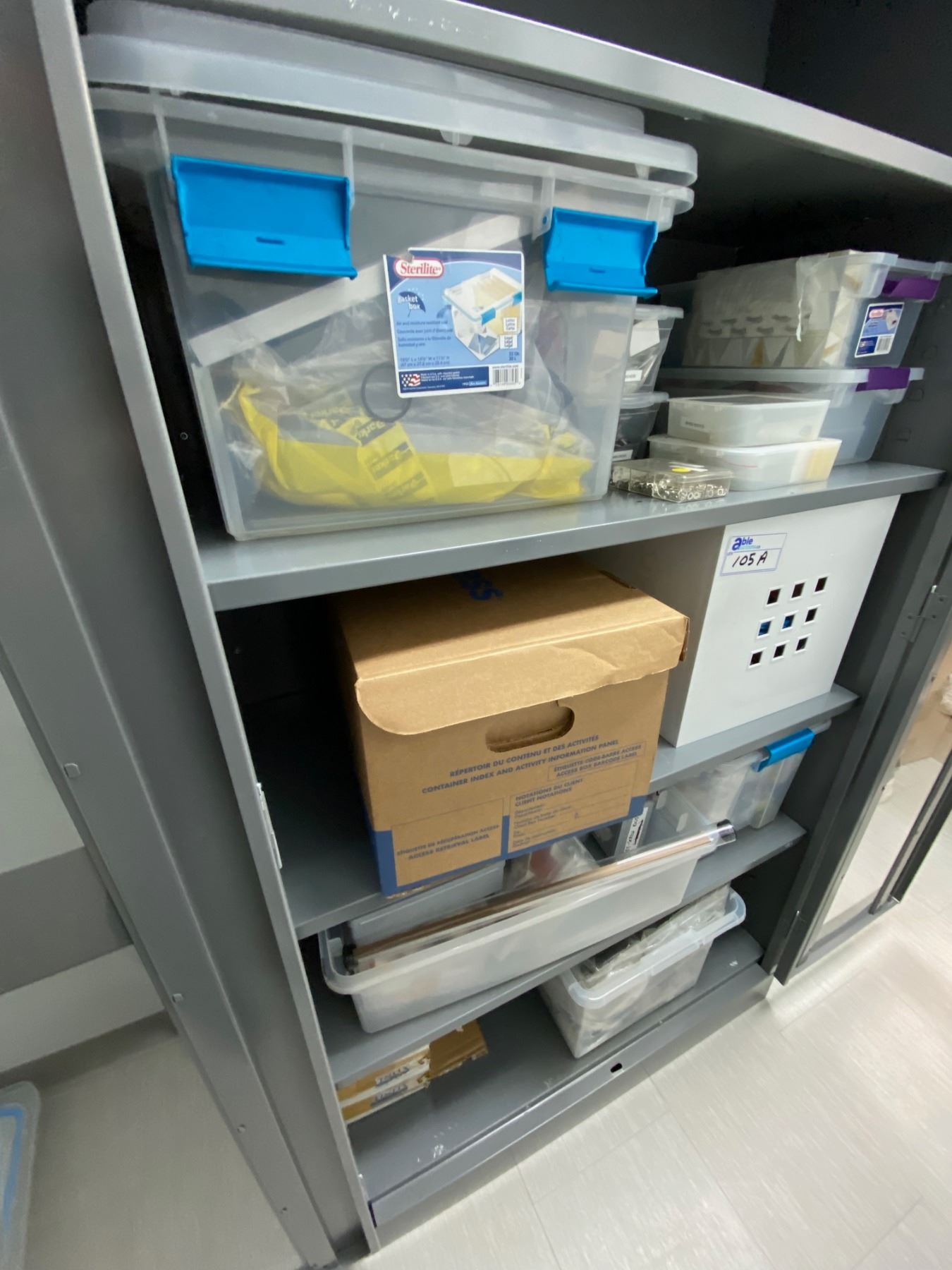 CONTENTS OF CABINET; LABELS, HARDWARE AS WELL AS 3 DRAWER MOBILE FILE CABINET