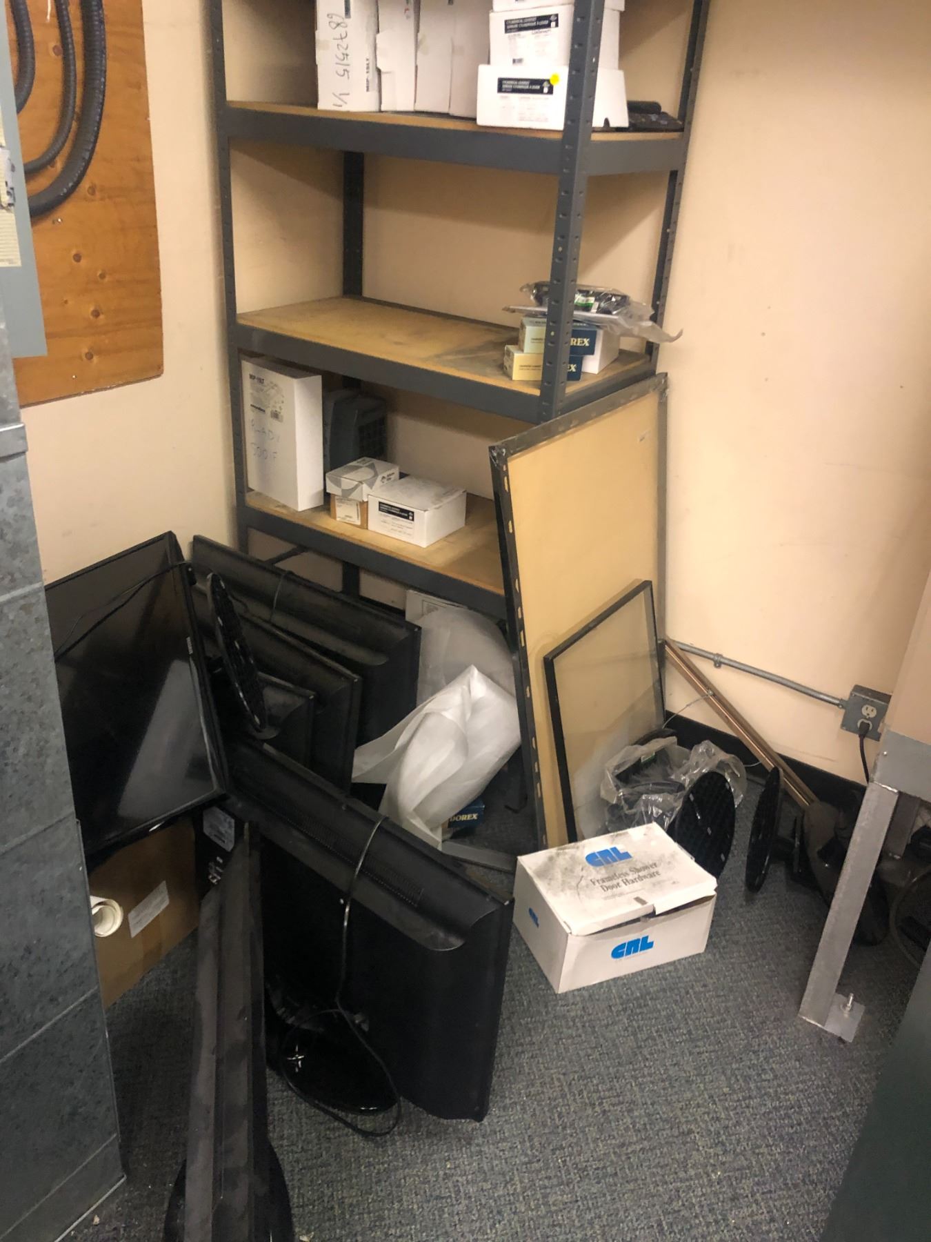 CONTENTS OF CLOSET INC RACK, PARTS TVS AND MORE