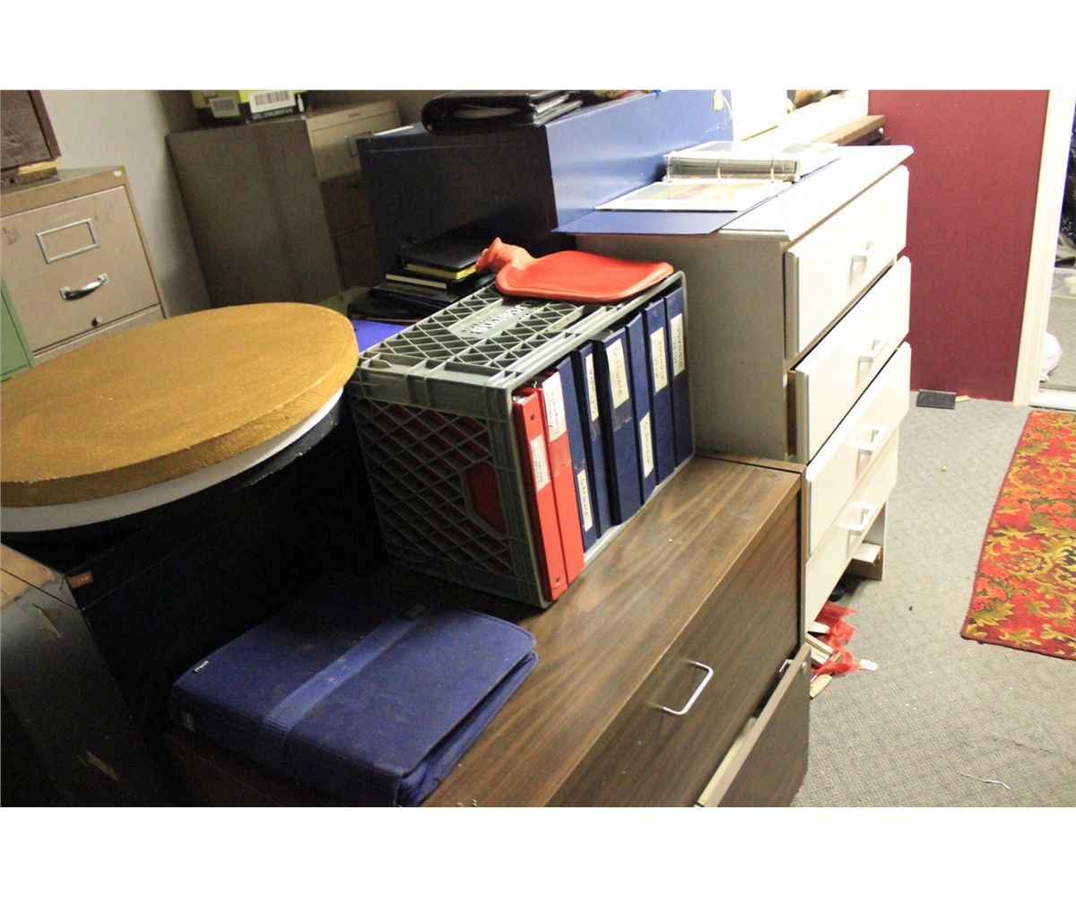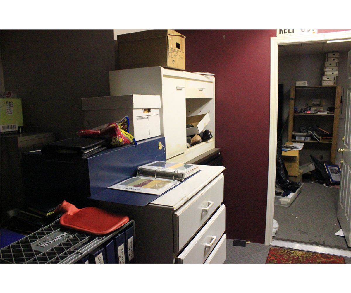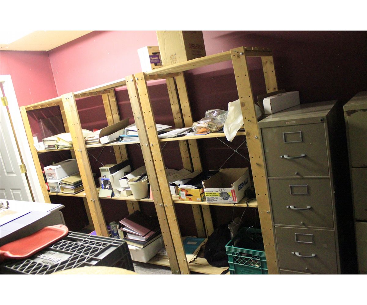 CONTENTS OF FILE OFFICE INCLUDING: SHELVING, FILE CABINETS & MISC