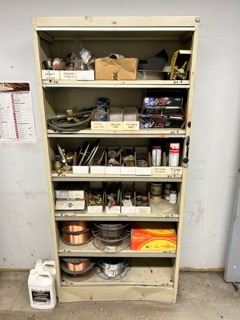 CONTENTS OF FIRST AID ROOM INCLUDING: FIRST AID CABINET, CONTENTS, METAL SHELF OF WELDING SUPPLIES,
