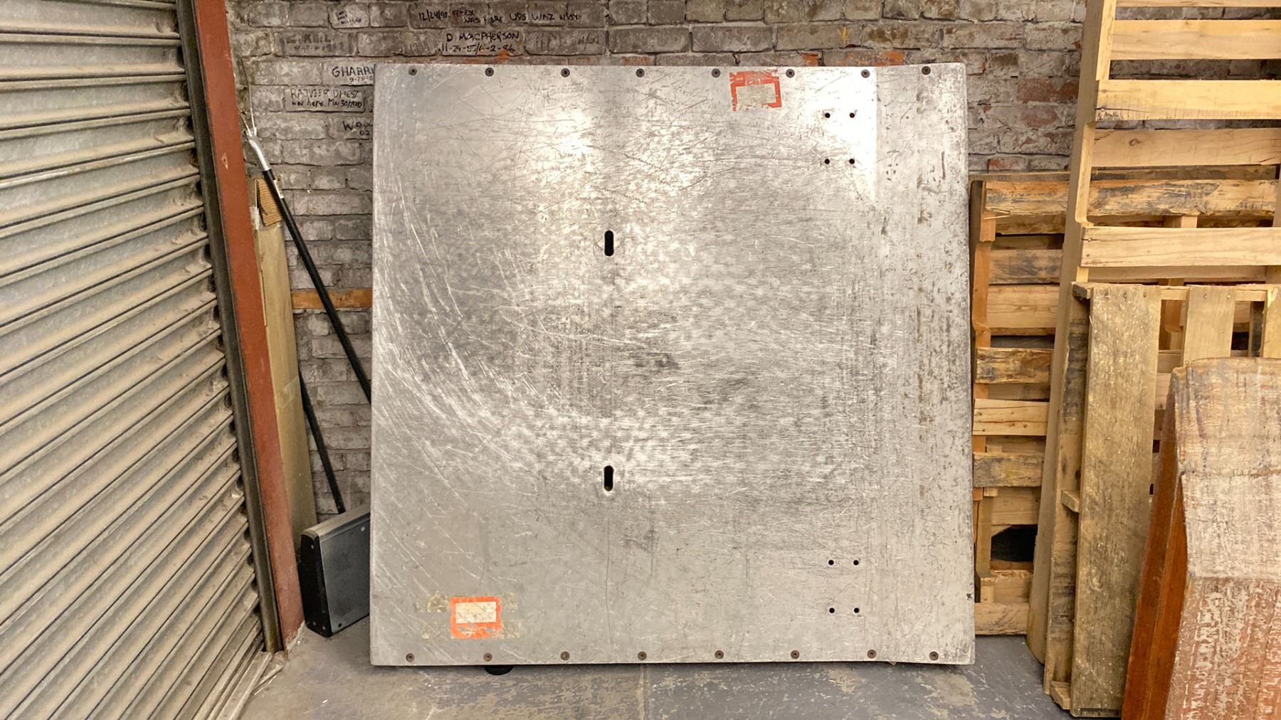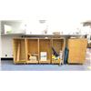 CONTENTS OF LOADING DOCK INCLUDING: LARGE ALUMINUM 60"W DOCK PLATE, 4 MOBILE WOODEN CARTS & ASSORTED PRINT SHOP CONTENTS